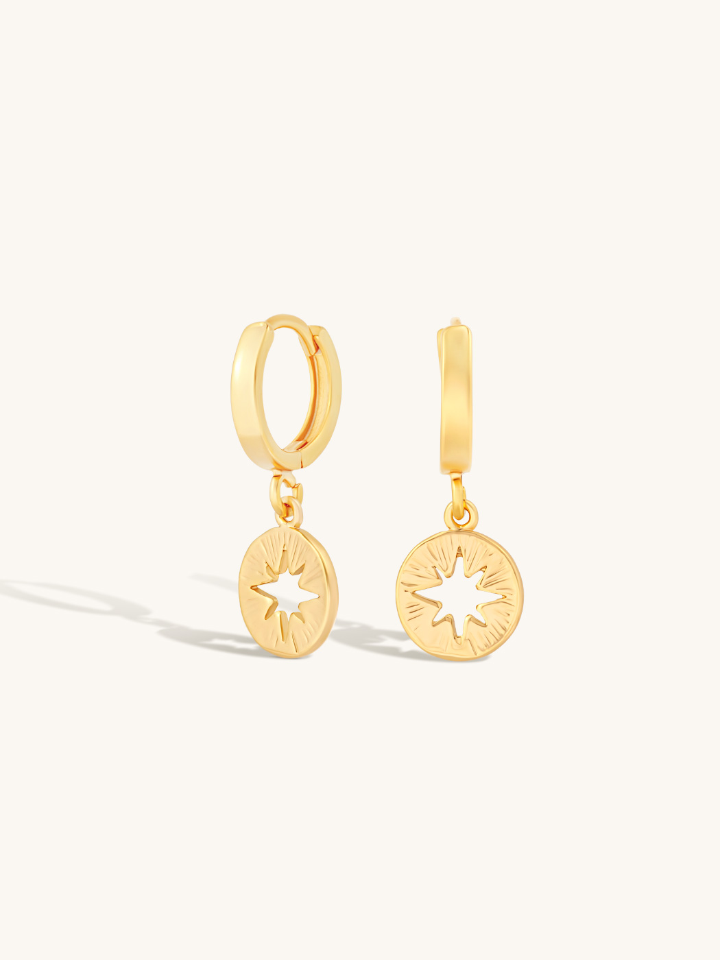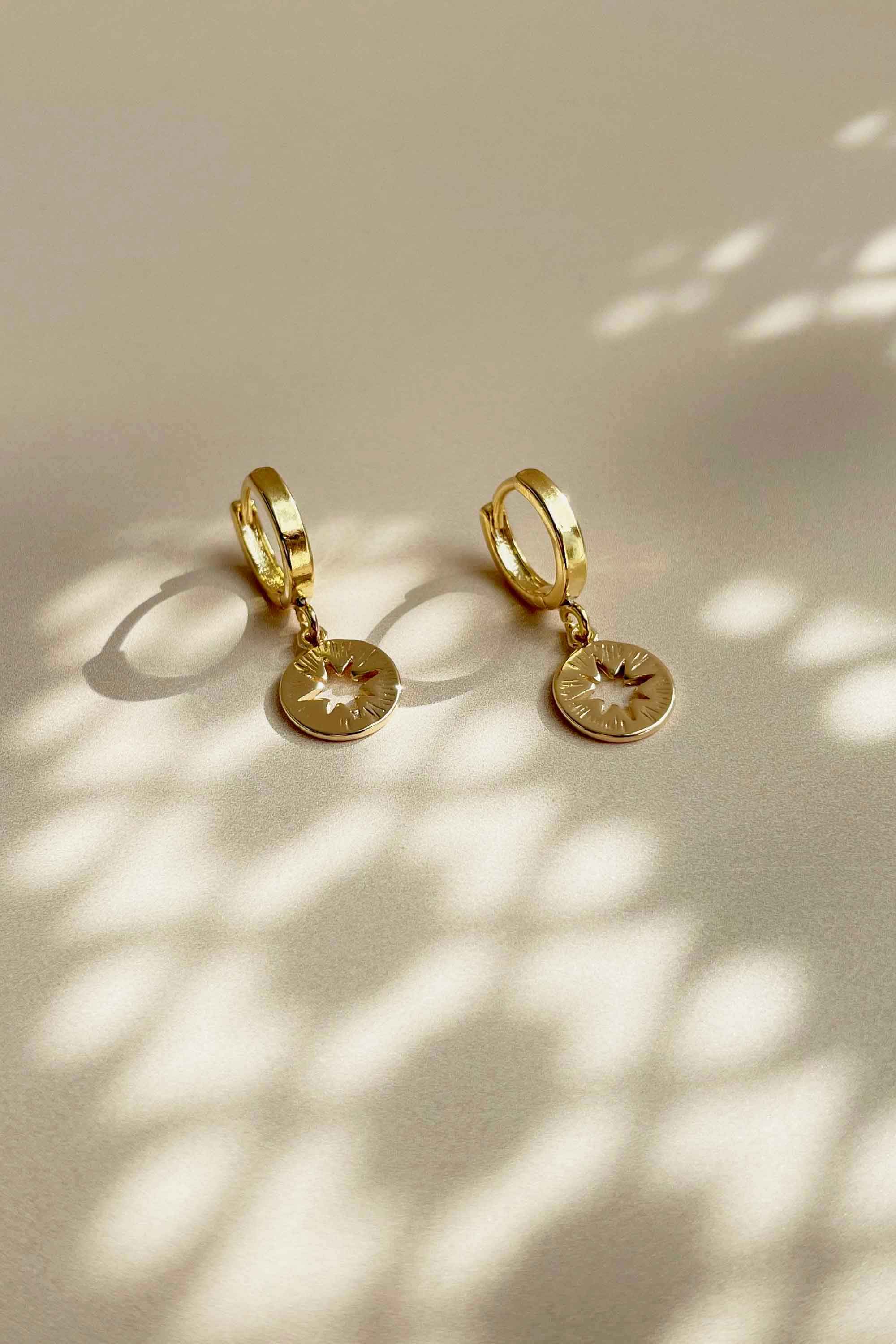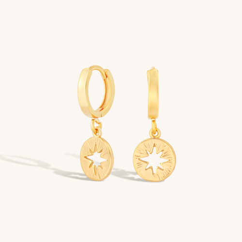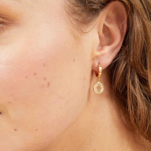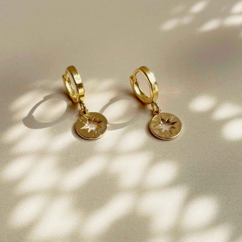 A delicate gold plated huggie holds a little star drop charm that channels the celestial. Minimal, subtle and so easy to stack up – great for your every day ‘go to’ , with enough texture to stand out.
