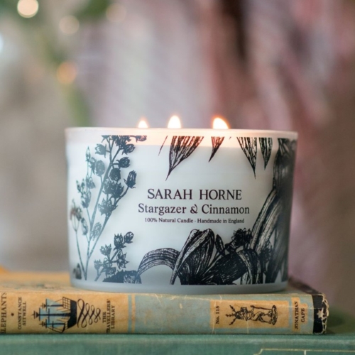 This glorious 3-wick glass votive candle is adorned with original Sarah Horne illustrations of Stargazer & Cinnamon to match its divine, warming fragrance.