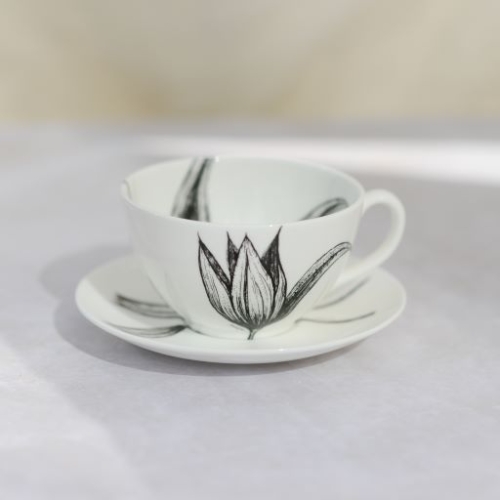 One of our favourites! The sweeping lines of Sarah’s exquisite illustrations of Stargazer Lily and Cinnamon swirl over the cup and saucer, making them fit together like a contemporary floral arrangement. Coffee breaks should always be savoured and stylish…
