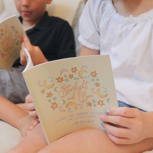 God made the starlight and the sun. He made you and me delightfully fun. This little book is filled with blessings for your little love, to say together in evening or morning, and give thanks to heaven above.