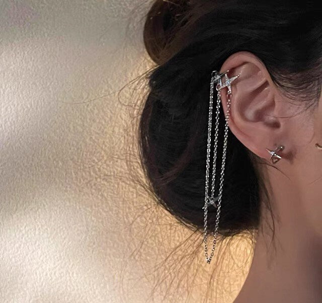 Stars Ear Cuff| Star ear cuff| Ear jacket | Celestial ear jacket|Tassel ear cuff | Ywo ways to wear