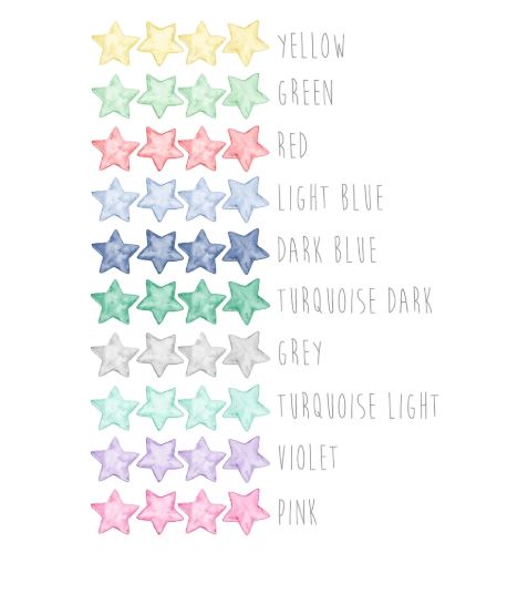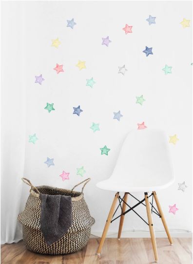 These stars decals will make a delightful and versatile addition to any nursery or playroom. Easy to match with your existing accessories.