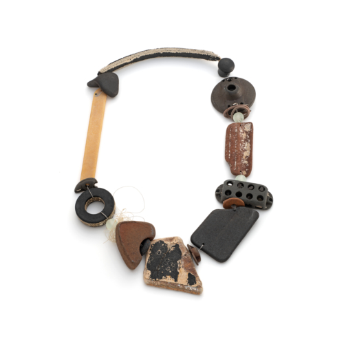 A true statement necklace made from recycled materials found on the Cornish coastline combined with a hammered brass pebble, re-purposed vintage wooden beads, volcanic rock beads and fair trade recycled bottle beads from Ghana. The main sea-plastic piece at the front is part of an old buoy, found at Watergate Bay near Newquay; the crystal set in eco-silver was found in a stream near Plymouth. The sturdy hook clasp is made from hammered eco-silver. This is a striking piece that’s certainly a talking point and a wearable collage. If you have your own beach finds that you’d like made into a necklace, please just message me: I love making them! And it’s great if the found materials used have a relevance to the wearer.