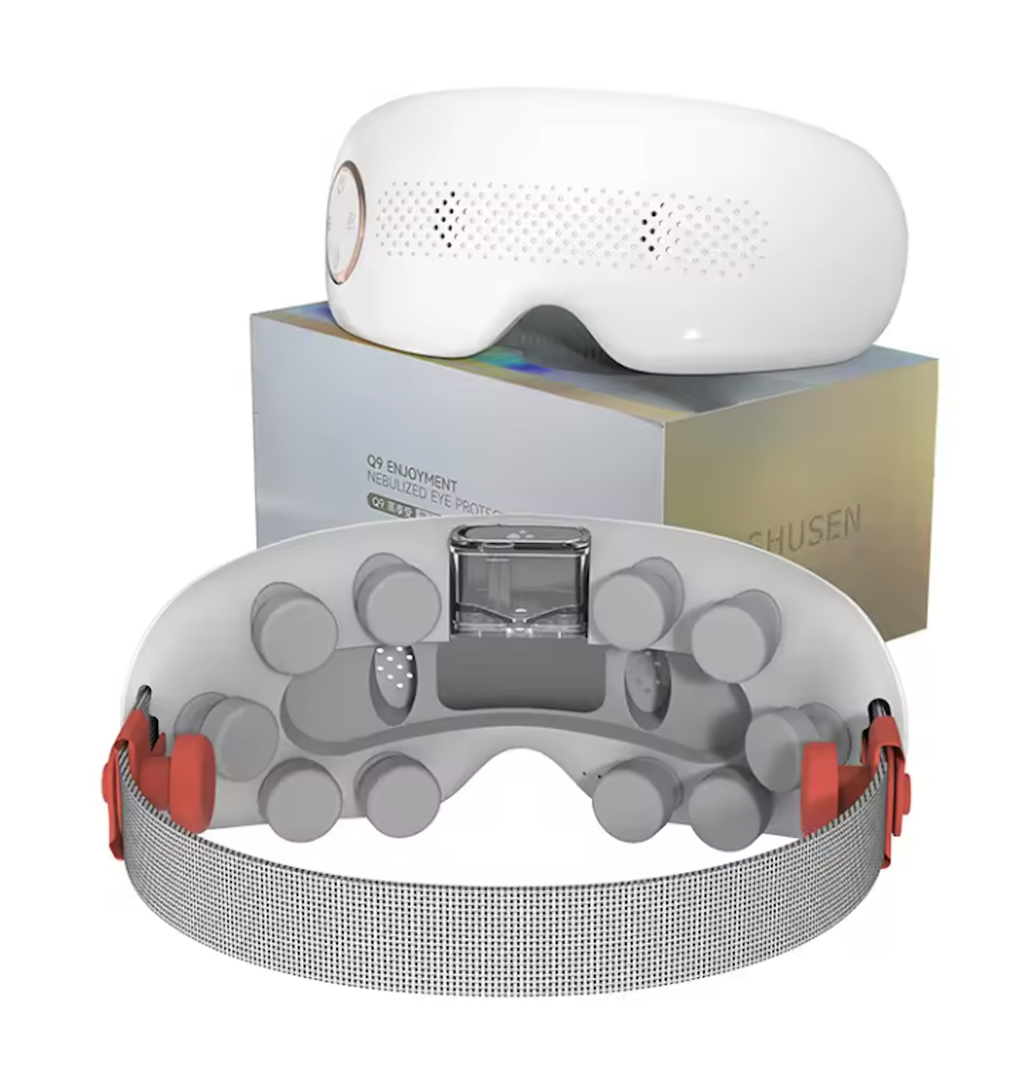 It’s designed with 8 acupressure nodes that stimulate key areas around the eyes and temples, promoting deep relaxation and stress relief. The device also features adjustable heat and vibration modes, is USB rechargeable, and folds down for easy storage or travel.