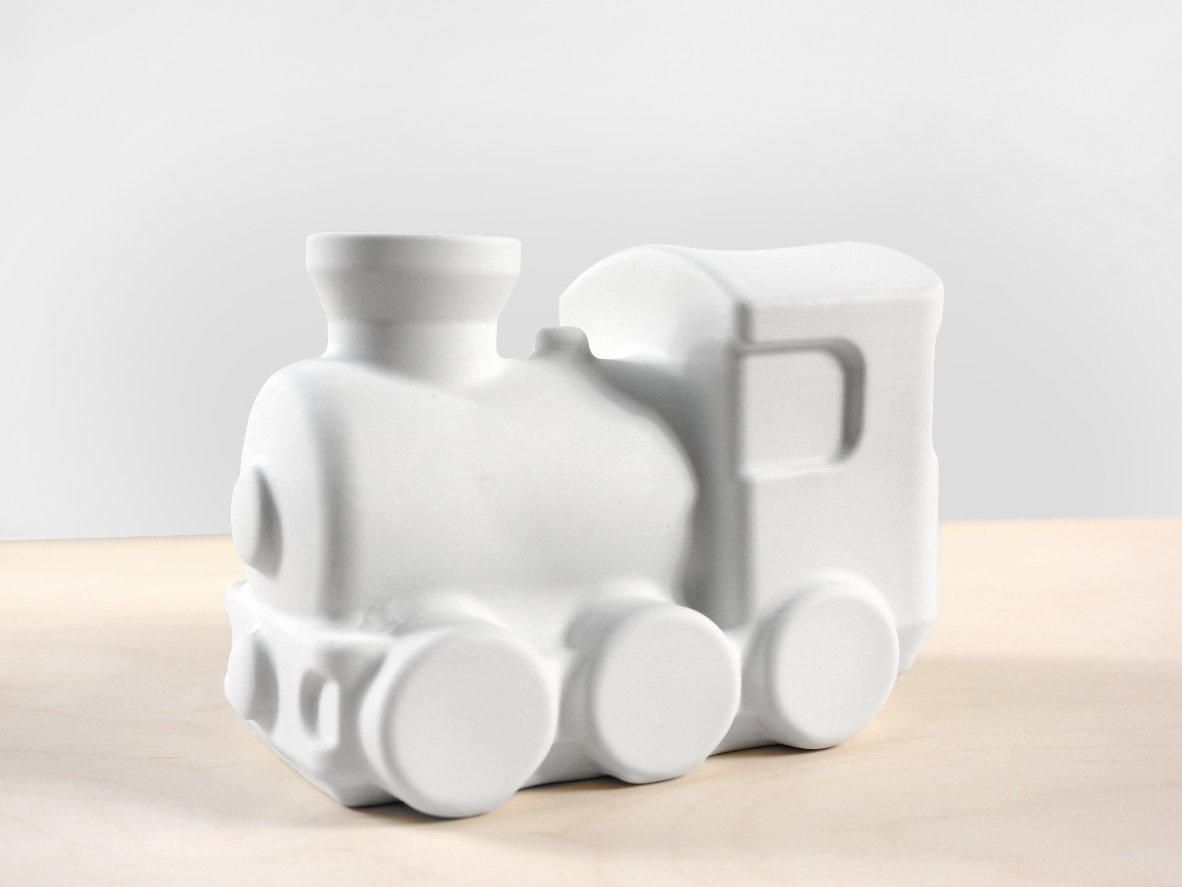 Chou Chou, the old trains from last century blew out massive steam clouds. Fill the porcelain train with water and place it on a heated surface to let the water vaporize. This results in a comfortable breathing air inside the house. So bring back the old days of steamy trains.
