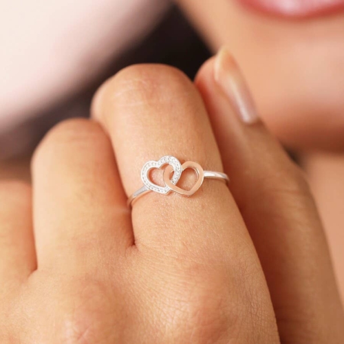Sterling Silver Double Gemstone Heart Ring in Rose Gold S/M