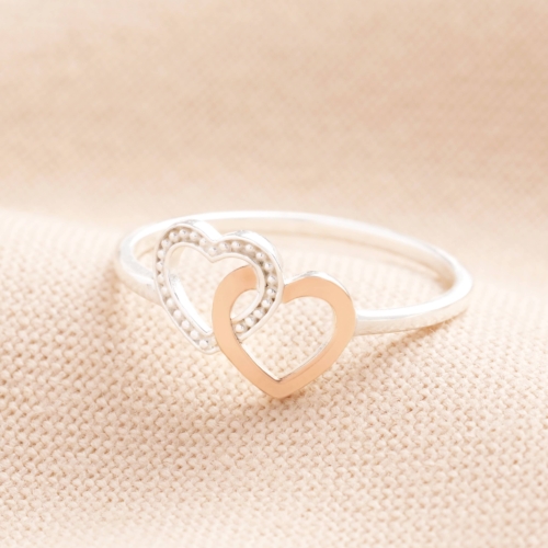 Sterling Silver Double Gemstone Heart Ring in Rose Gold S/M