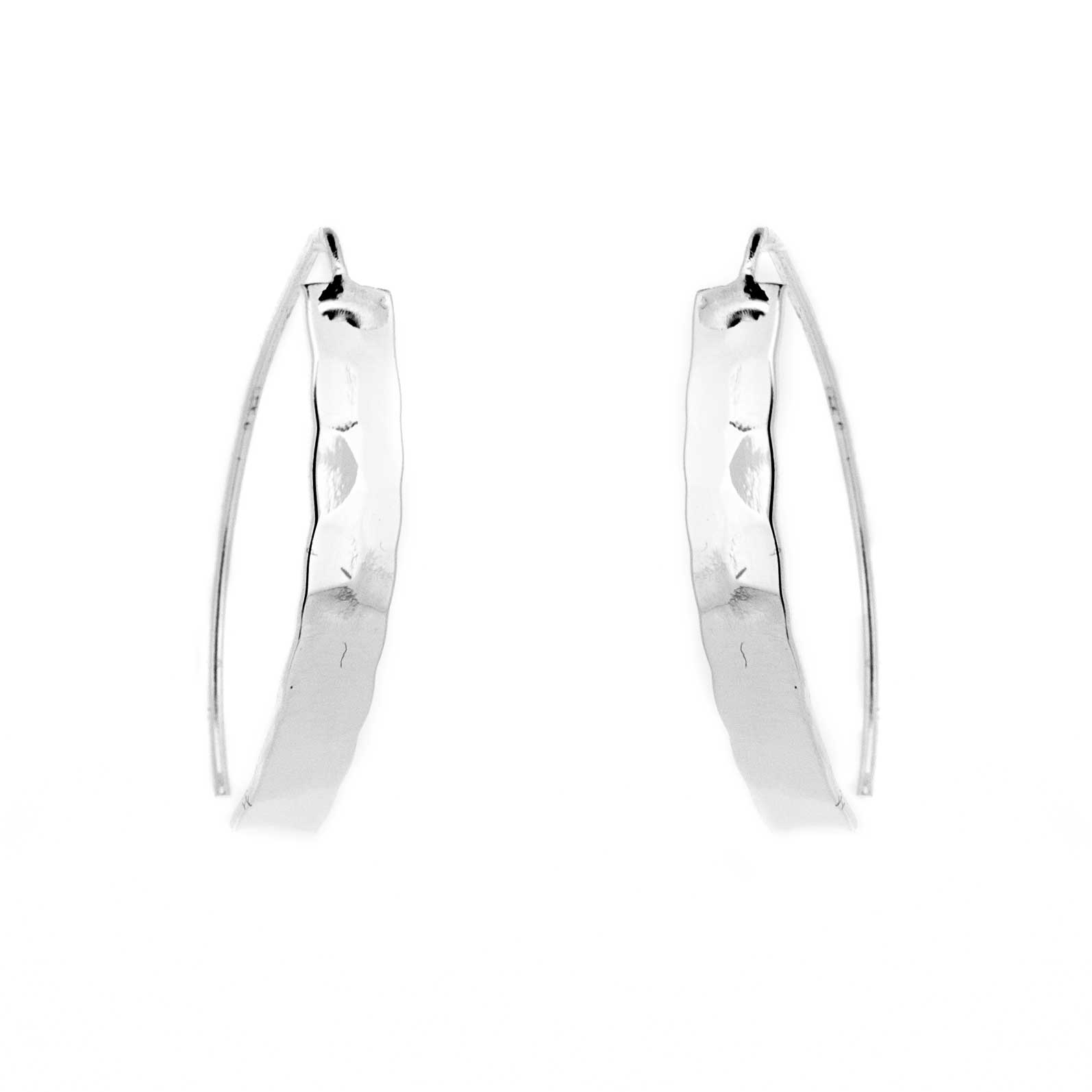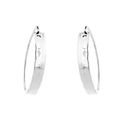 Another timeless design of earring, featuring a convex piece of silver stylishly finished off with a hammered look.