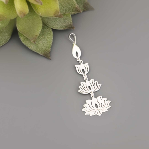 A poetic tribute to life’s journey, this sterling silver pendant features the lotus in four distinct stages-from bud to full bloom. Representing the path of personal growth, resilience, and awakening, it’s a meaningful design for anyone on a journey of transformation.🔍 Key Features:* Design: Four stylized lotus blooms cascading from top to bottom, capturing each stage of evolution* Size: Measures 2.25″ long x 0.75″ wide (plus bail)* Material: Made from sterling silver (925), polished with a high gloss finish* Features: Lightweight with beautiful fluid motion, making it ideal for layering or daily wear* Sold as a pendant. The chain is sold separatelyWhether gifted to inspire or worn as a symbol of your own journey, this piece serves as a daily reminder that beauty unfolds one step at a time. (Chain sold separately.)