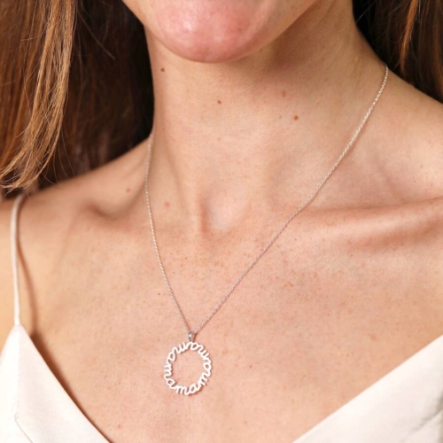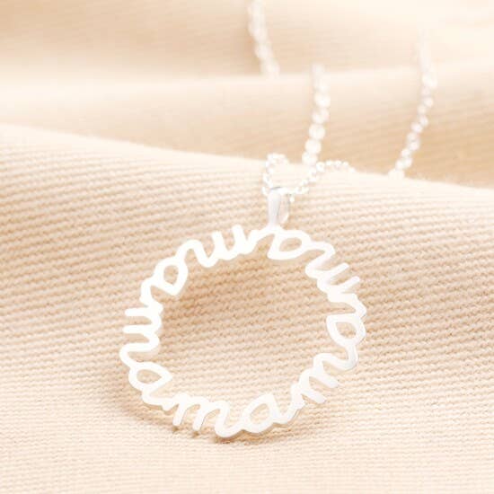 Sterling Silver Mama Circle Pendant Necklace in Silver