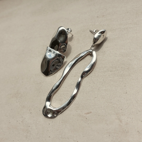 Contemporary large stud earrings in a melted shape, sculptural and irregular silhouette to make a statement. These earrings are crafted in 925 sterling silver. Material 925 Sterling Silver. Shipping FREE UK Standard shipping. Option to upgrade to 24hs/48hs Tracked delivery at the checkout. Packaging All of our jewellery comes in a delicate pouch, perfect for gifting. Jewellery boxes can be purchased as an add on.
