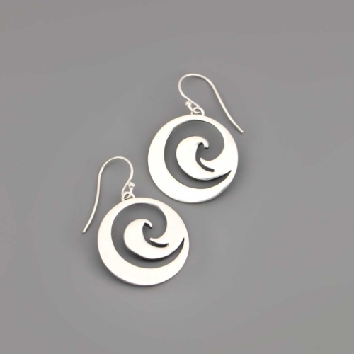 A tribute to the power and fluidity of water, these abstract ocean wave earrings are a wearable reminder to move with grace through life’s tides. Crafted in sterling silver, the minimalist spiral design evokes the rhythmic energy of the sea while offering a calming sense of flow and strength.🔍 Key Features:* Design: Abstract wave spirals, open-cut for a clean, modern silhouette* Size: Approximately 1″ in diameter (plus hook), offering lightweight comfort* Material: Made of sterling silver (925) with a polished finish* Features: Designed to symbolize movement, energy, and adaptabilityWhether worn as a daily accessory or for mindful moments, these earrings carry a symbolic message of going with the flow, trusting the currents, and finding beauty in change.