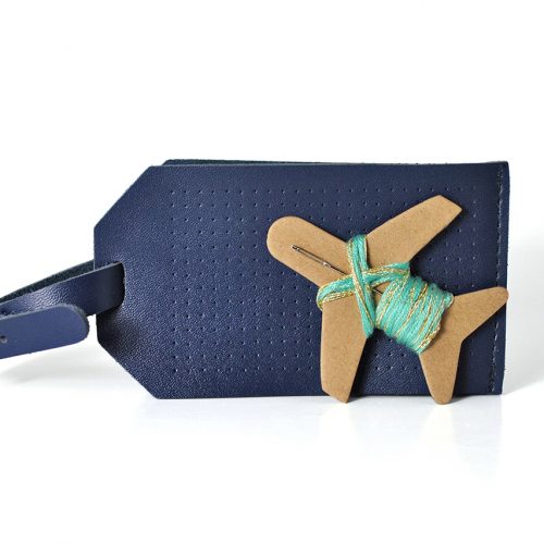 The real leather navy tag is specially perforated so it’s a blank canvas to be cross-stitched with a unique design. It comes with ‘travel’ needle and threads (on a cute aeroplane board!). Stitch with initials, a country flag or bespoke design to create a personalised label. Simply remove the strap to stitch the cover, and pop in your business card or contact information into the clear pouch inside.