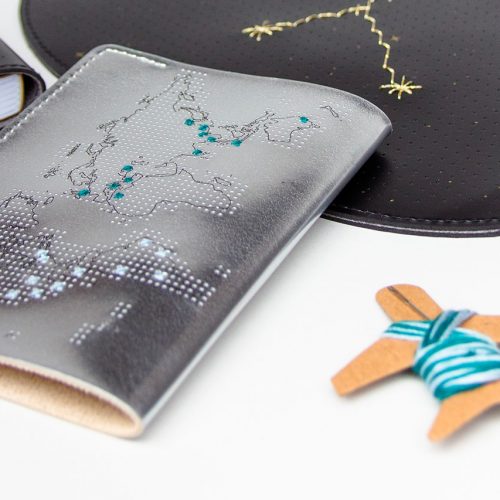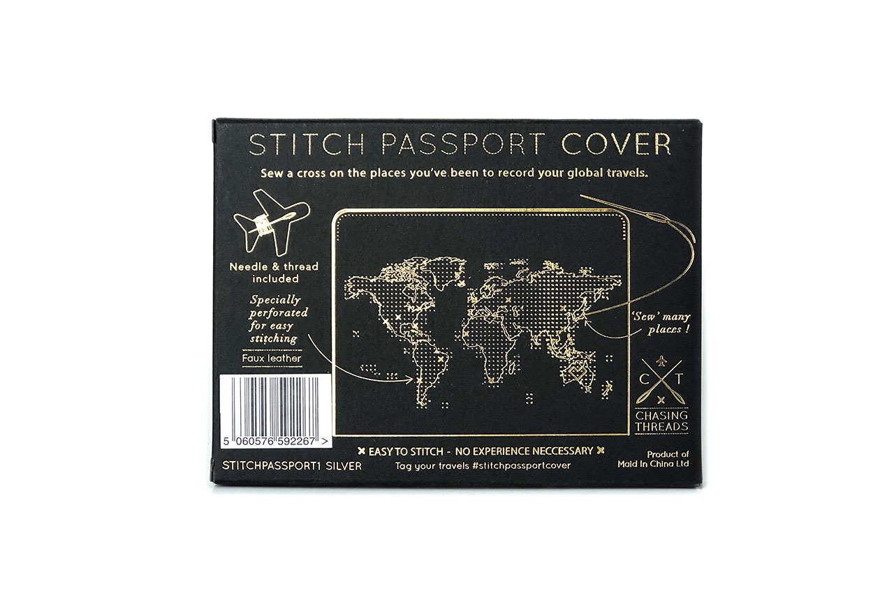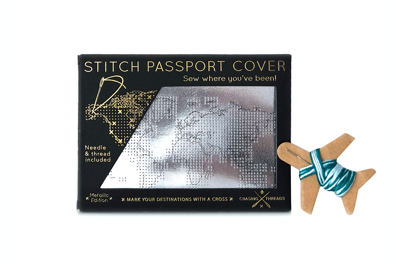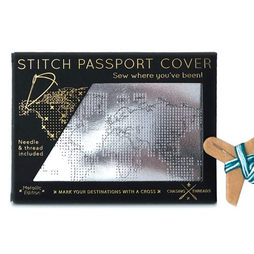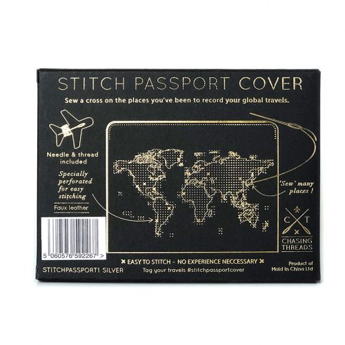 The metallic silver passport cover is printed with world map and is specially perforated, so each country visited can be marked with a colourful cross. This beautiful silver passport cover makes a classy addition to your travel accessories. It come with a ‘travel’ needle and 2 colour threads included, ready to be cross-stitched with global travels. It is very easy to stitch and an ideal gift for those off on a new adventure- even if they have not sewn before!