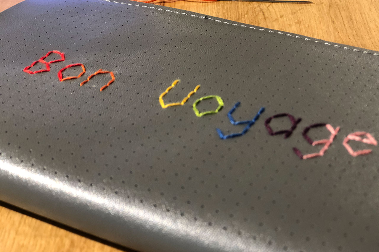 The ‘Stitch where you’ve been’ travel document organiser is now available in grey!