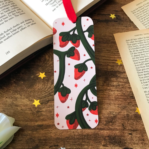This bookmark (unlike many other items in our shop) was printed out-of-house, but was accessorised by hand in-house.