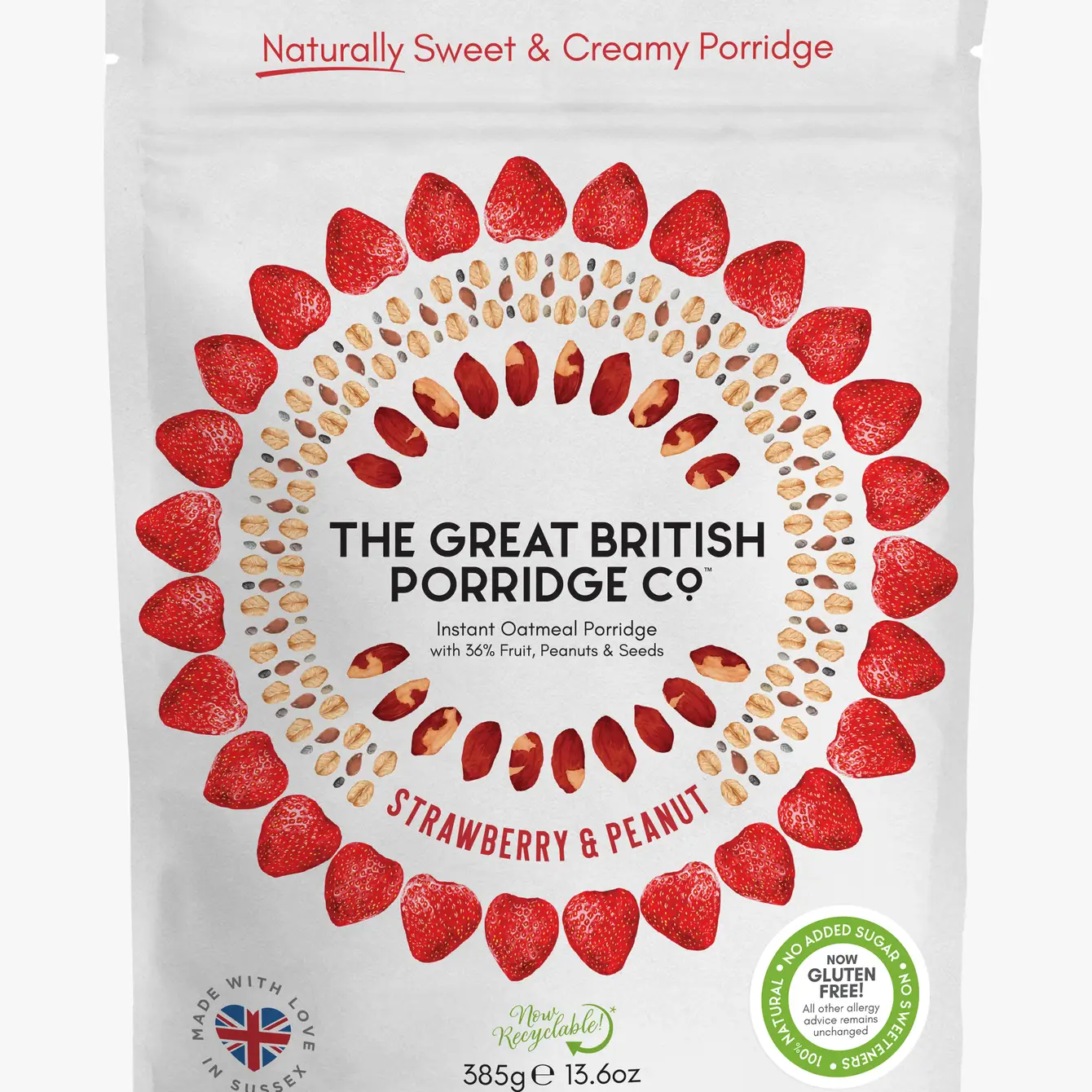 If there was an award for the perfect flavour pairing, Strawberry & Peanut would be somewhere near the top! The sweetness of summery strawberries mingles with crunchy roasted peanuts, bringing you a creamy, oaty, and nutty porridge with a deliciously fruity twang.