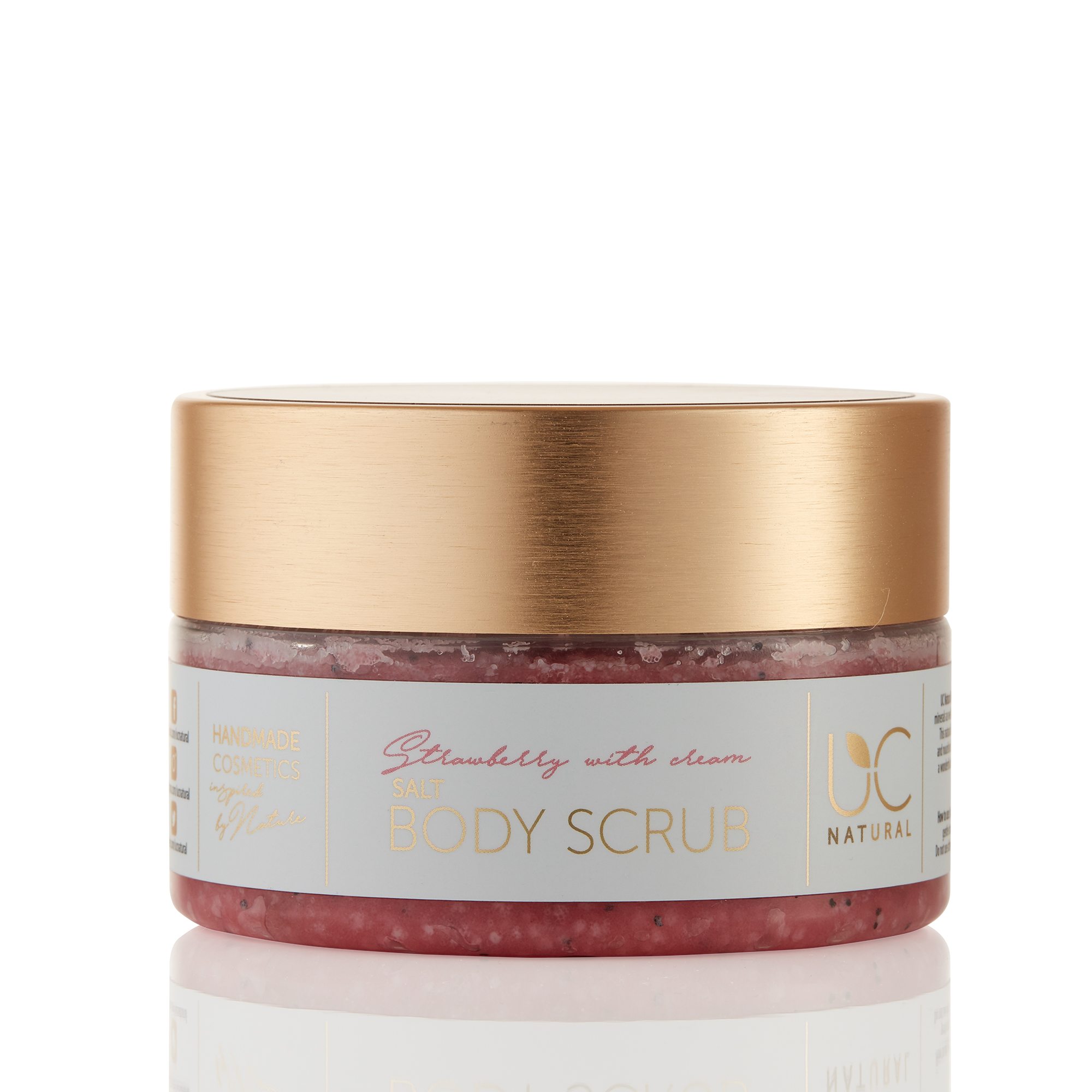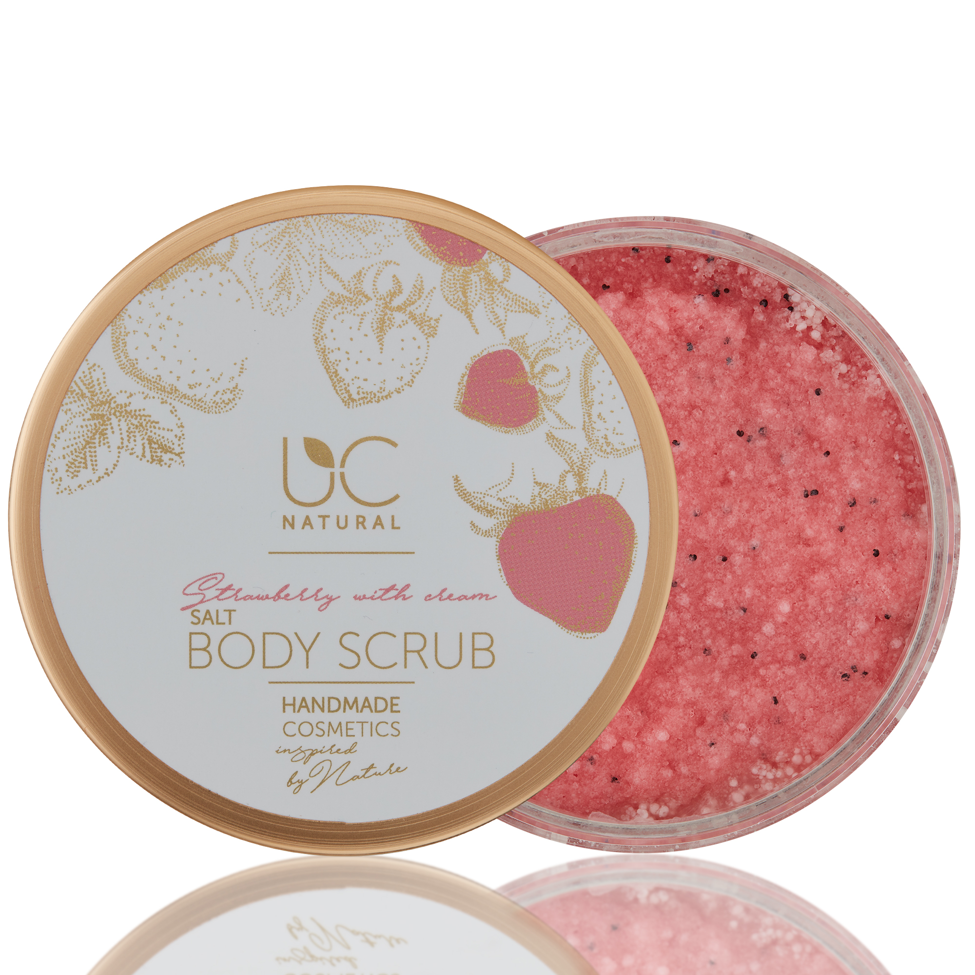 UC Natural Handmade Salt Body Scrub is enriched with Dead Sea minerals as well as coconut and cocoa butter, grapeseed, and coconut oils. This natural blend gently exfoliates the skin and leaves it softened and nourished. The natural aroma of Strawberries will leave a wonderful and long-lasting scent, while your skin becomes velvety and vitaminized.