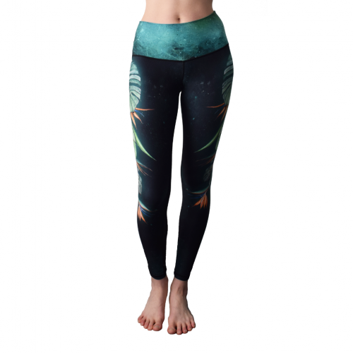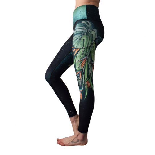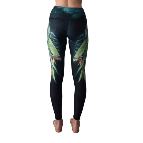 Vibrant green and black colors and symmetric flower design of our Strelitzia Leggings will inspire you to work out, do yoga or just stroll around the city.