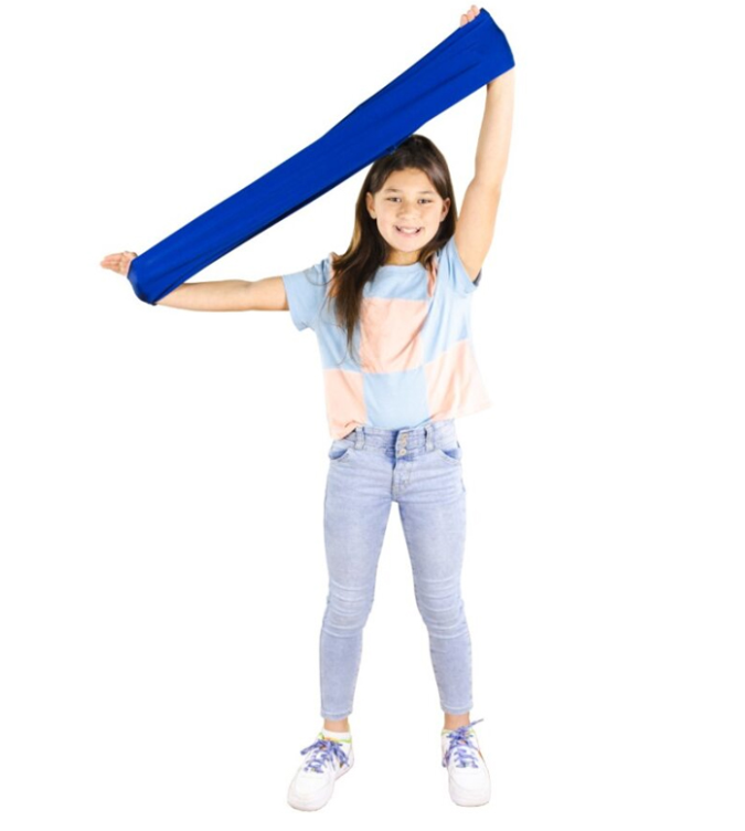 Calming, silent and satisfying sensory toy reduces stress and anxiety and increases focus in school, at home and just about anywhere. SENSORY RELIEF: Silent sensory tool reduces stress by encouraging activities that allow children to explore their environment, learn and develop their senses CALMING INFLUENCE: Outstanding outlet for excess energy relieving stress and anxiety as they discover the world of shape and space creation MIND-BODY BENEFITS: Stretching the softly resistant band awakens the imagination, promotes the development of balance, and strengthens muscles. Improve spatial awareness by forming unlimited creative shapes pulling, bending, twisting, and knotting the band COMFORT FOR SENSORY ISSUES: Perfect for home or school, the therapeutic relief when stretching the band is beneficial to all children who need to decompress and relax including those with ADHD, autism, and sensory needs Size: 30”x 6” (76cm x 15 cm), stretches to over 46” (117cm) and snaps back to its original dimensions Machine wash gentle cycle – air dry