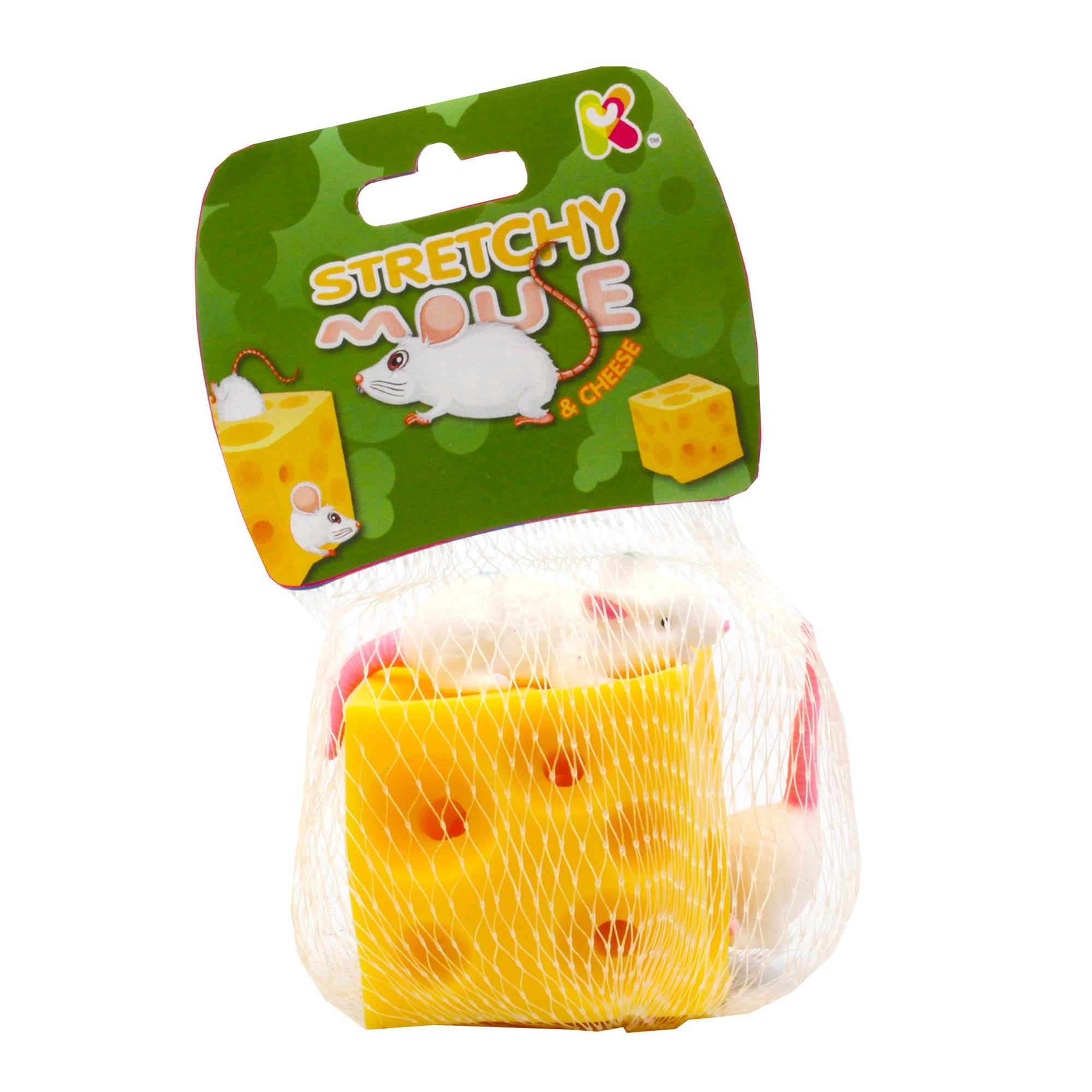 A piece of cheese with holes in it – There must be mice in here! This rubbery novelty cheese comes with 2 lifelike mice inside. The cheese features a variety of craters, through which the mice can be squeezed and threaded, for hours of tactile pleasure.