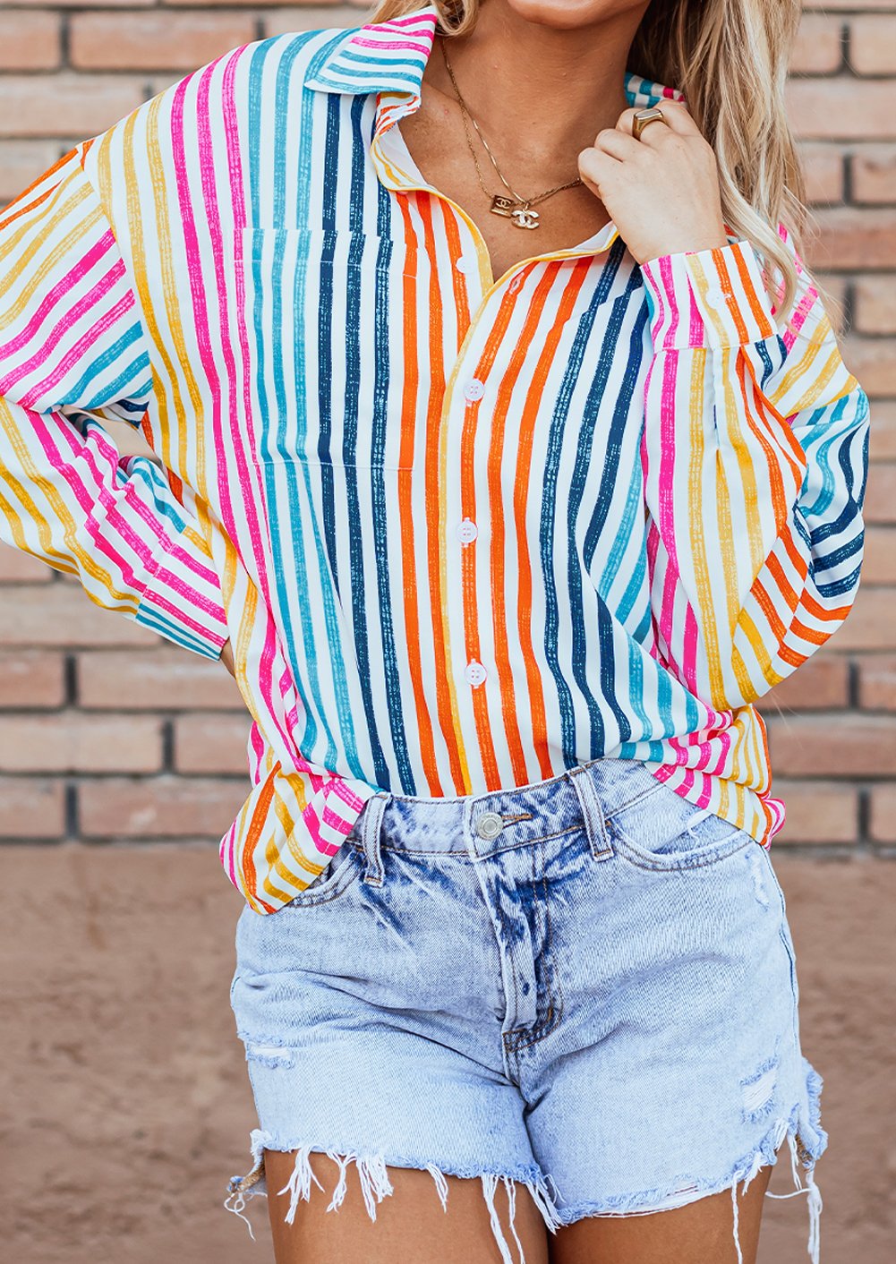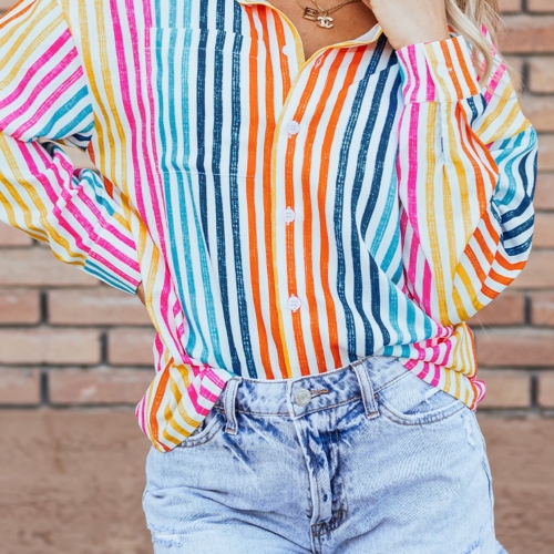 Stripe Multicolor Drop Shoulder Loose Shirt – (GD425550584 ~ MULTI)