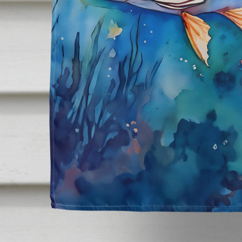 House Flag featuring breed specific Striped Bass artwork. Presenting our Heavy Duty Polyester House Size Decorative Sleeve Pole Flag, a vibrant addition to enhance the aesthetic appeal of your home. This large decorative flag, measuring approximately 28 x 40 inches, offers ample coverage and visibility. Each flag is meticulously sewn and made individually, ensuring a unique piece that may slightly vary in size. It’s a sleeve pole flag, designed to fit a standard decorative flag pole effortlessly. Please note that the flag pole and bracket are not included and should be purchased separately. What sets our flag apart is its dual-sided print. The design is mirrored on both sides of the fabric, allowing for uniform visibility regardless of the angle. Printed in full color, our flag showcases vibrant hues that truly stand out. To ensure lasting vibrancy and durability, the dyes are heat-set into the fabric. This ensures your flag remains bright and captivating through various weather conditions. Elevate the look of your home with our Heavy Duty Polyester House Size Decorative Sleeve Pole Flag!