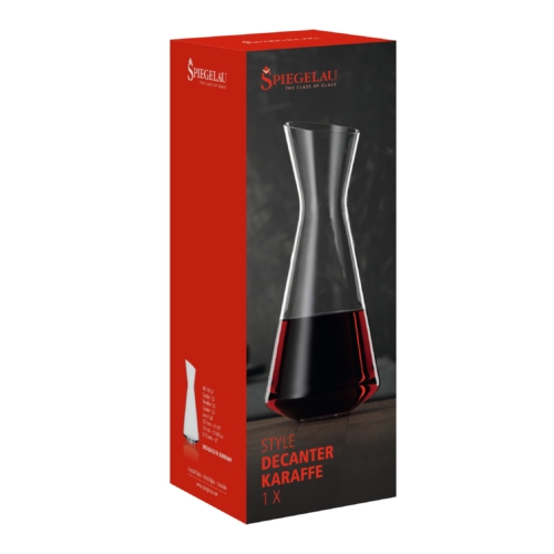 Perfectly balanced, the Style decanter has a beautiful modern silhouette. The elegant, fine walls are flawlessly transparent and even, keeping the focus on the vintage and aerating effortlessly. Quantity: 1 decanter Materials: Lead-free crystal Capacity: 33 oz. Care: Hand wash recommended