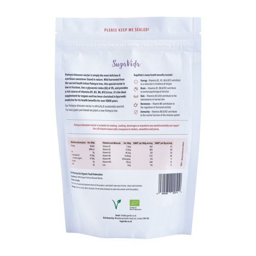 Sustainably farmed and ethically sourced, Great Taste Award winning Palmyra Blossom Nectar can be used either as a B vitamin supplement or as an alternative to sugar and other sweeteners in drinks, cooking, baking and anywhere you would normally use sugar, helping you in your quest for balance and wellness.