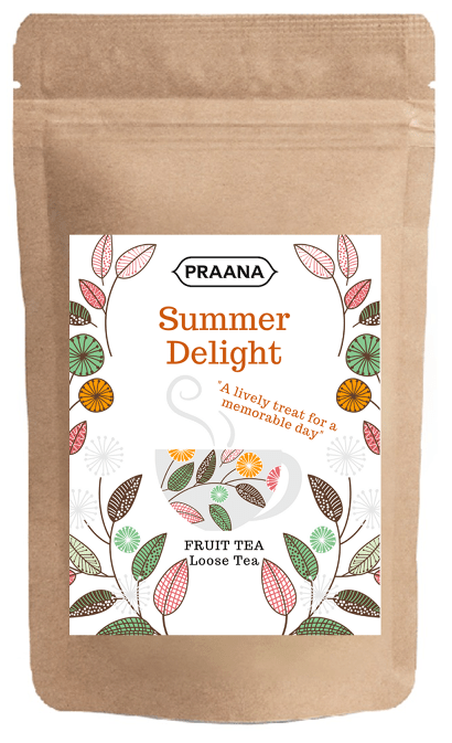 PRAANA TEA sources all their tea variants in a pure and natural way. The Summer Delight Tea is an all-time seasonal infusion of pure herbs (hibiscus, rosehip) and naturally dried refreshing fruits (luxury apple and orange pieces) to quench your thirst, make you energetic, and lively throughout the day.