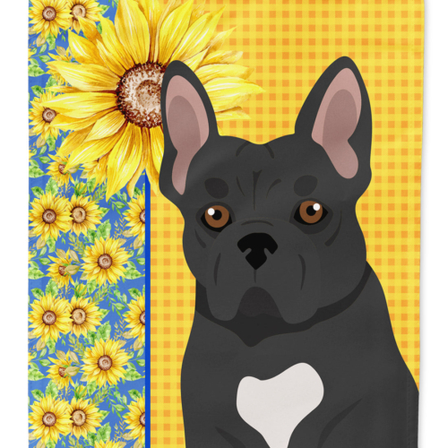 Garden Flag featuring breed specific French Bulldog artwork. Add this colorful Garden Flag to decorate for Summer, This Garden Flag is from Caroline’s Treasures collection Summer Sunflowers. Enhance the beauty of your garden, patio, or yard with Caroline’s Treasures Decorative Garden Flag, proudly made in the USA. Crafted from two pieces of thick, double-sided polyester fabric, this 2-ply garden flag is designed to withstand various weather conditions, making it water-resistant and weatherproof. Featuring correctly readable words on both sides, this garden flag offers a delightful visual experience from any angle. With its heavier weight, it stands out among other garden flags, ensuring stability and durability even in wind, rain, and snow. Measuring approximately 11 1/4 inches by 15 1/2 inches, this flag allows you to personalize your outdoor decor. It comes with a 1 1/2-inch sleeve sewn in, allowing easy attachment to any standard garden flag stand or garden size porch hanger (sold separately). Make a statement in your outdoor space with Caroline’s Treasures Decorative Garden Flag, a vibrant and high-quality flag that adds color and personality to your surroundings. Proudly made in the USA, it’s a symbol of quality craftsmanship and attention to detail. This Garden Flag is from Caroline’s Treasures Dogs category of products.