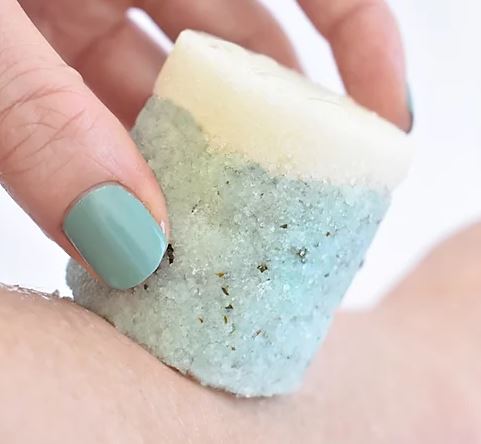 Peppermint & Spirulina Scrub: the ultimate body buff. Natural botanical body scrub with biodegradable exfoliant, nutritious spirulina and real mint leaves. Your skin will feel reborn!