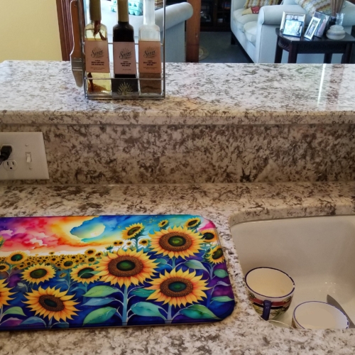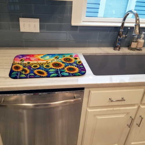 Sunflowers in Color Dish Drying Mat