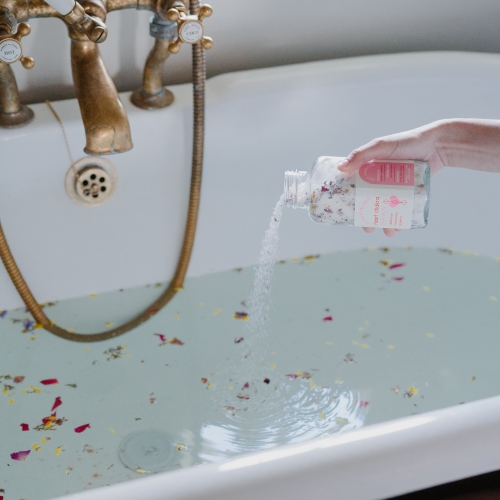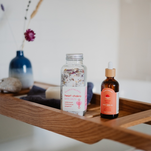 Luxurious mood-boosting aromatherapy bath salts from our Sunset Bliss range formulated with 100% natural Jasmine, Ylang Ylang, and Neroli essential oils. In one of our most sensual blends, heady Jasmine, comforting Ylang Ylang and uplifting Neroli are lovingly hand-blended in magnesium-rich Epsom Salts, dried rose petals, lavender, and chamomile flowers for a truly special treat. The item is packaged in an attractive 335 g glass jar with an aluminum twist cap.