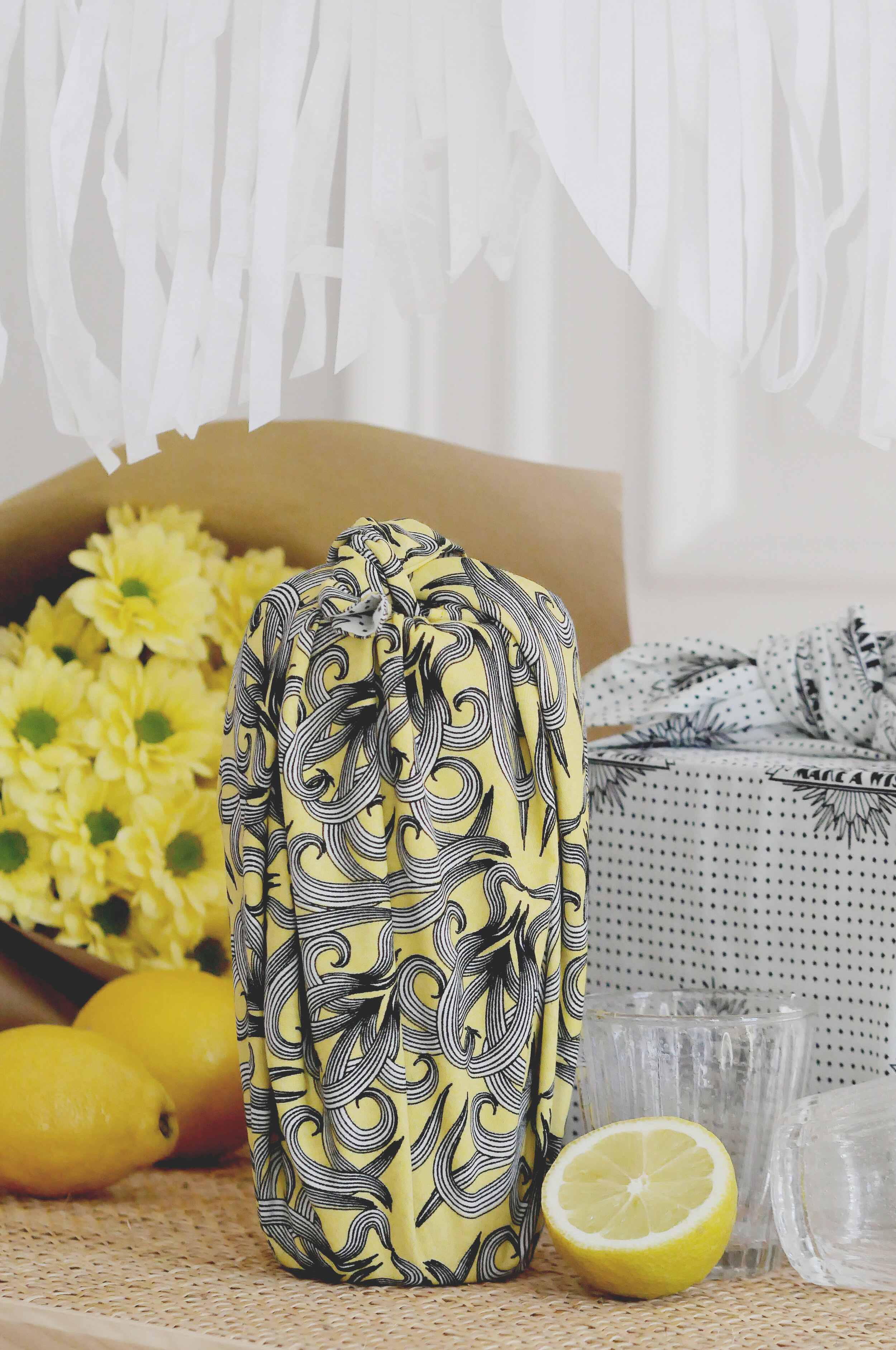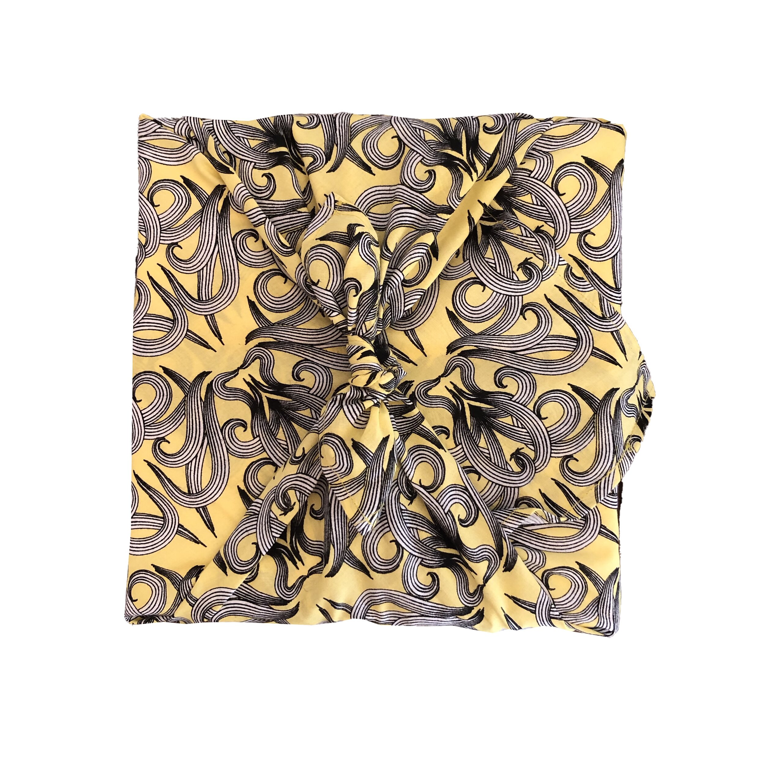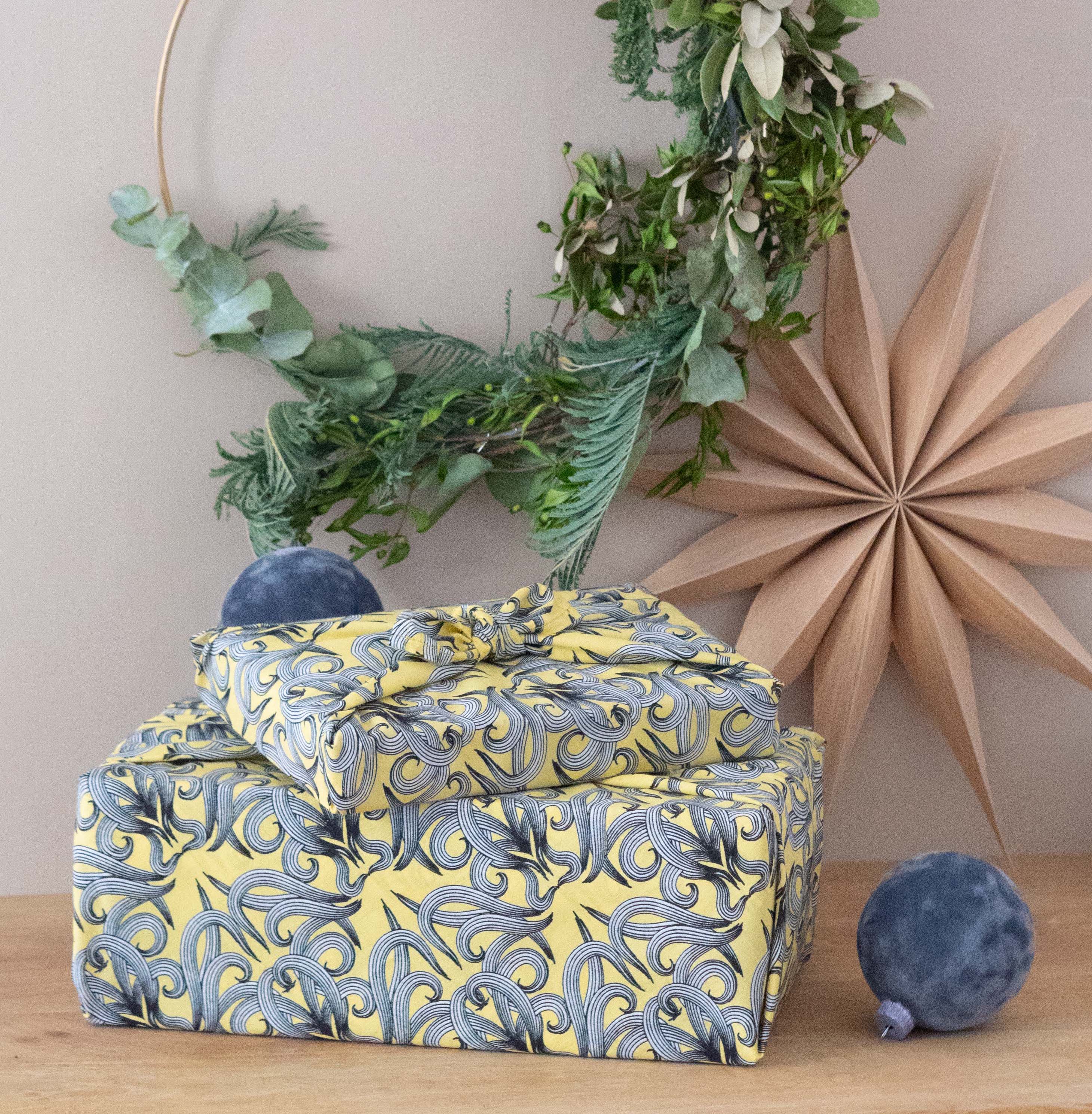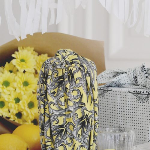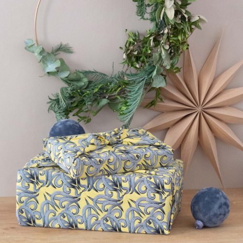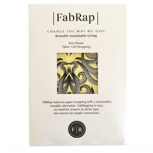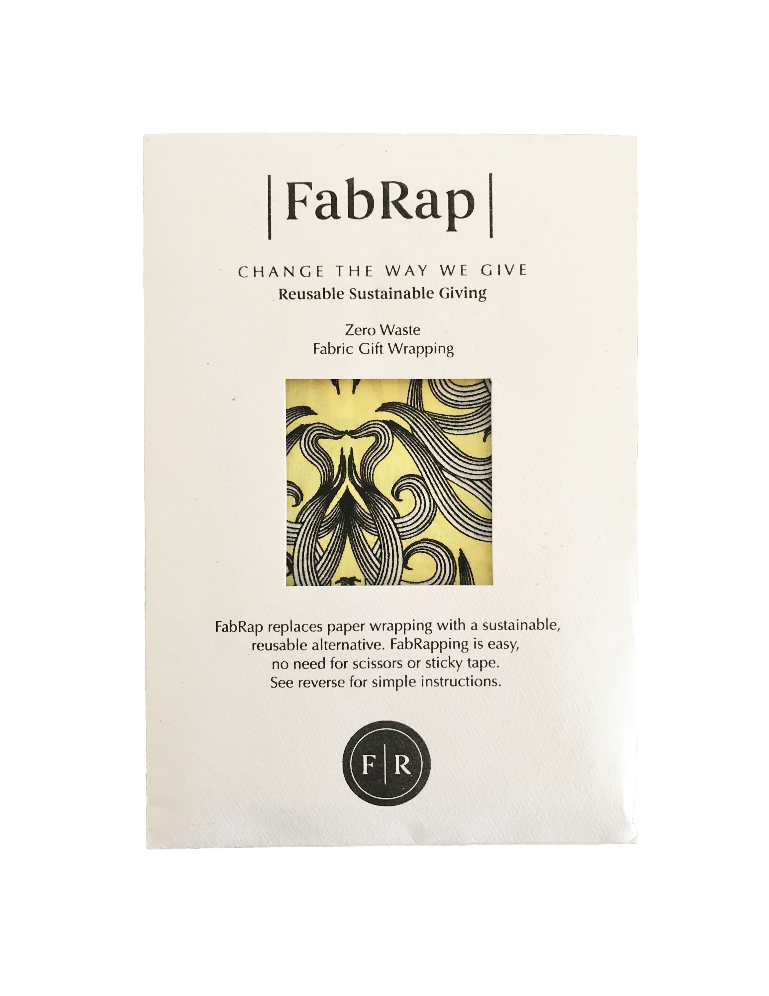 A FabRap exclusive design, this sunshine coloured, art-nouveau inspired print is great to brighten up any gift-giving occasion. All our FabRaps are packaged in a beautifully illustrated recycled paper envelope to help store your FabRap safely when not in use.