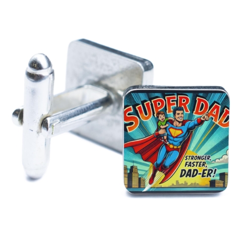 Celebrate the ultimate superhero in your life with these Super Dad Cufflinks! Featuring a vibrant comic-book-inspired design of a dad-hero in action, these cufflinks are the perfect tribute to the strength, speed, and dad-power of every amazing father. Made from premium materials and finished with a sleek polish, these cufflinks are as durable as the super dads they represent. Whether you’re gifting them for Father?s Day, a birthday, or just to show your appreciation, they are sure to bring a smile to his face. Make every dad feel like a hero with this unique and fun accessory that?s perfect for any occasion! Heroic Design: Features a comic-style “Super Dad” illustration, showcasing a superhero dad with a child. Premium Quality: Crafted with durable materials and a polished finish for long-lasting style. Perfect for Superheroes: Celebrate the superhero in your life with these fun and stylish cufflinks. Great Gift Idea: Ideal for Fatherâs Day, birthdays, or any occasion to honor a super dad. Versatile Accessory: Suitable for casual and formal wear, adding a touch of humor and charm to any outfit.
