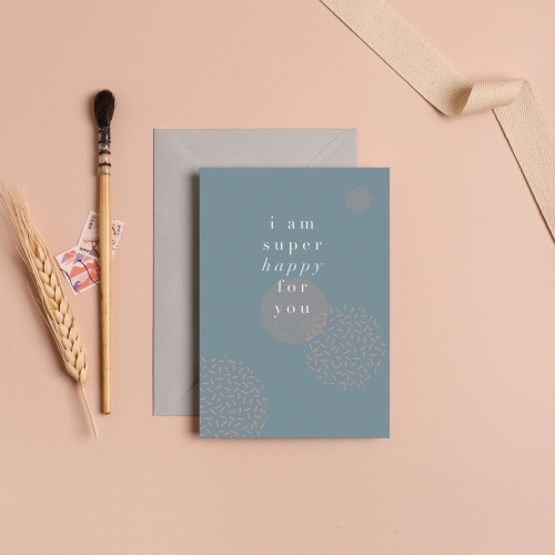 FSC Certified 320gsm Card from sustainable sources with a pale grey envelope.