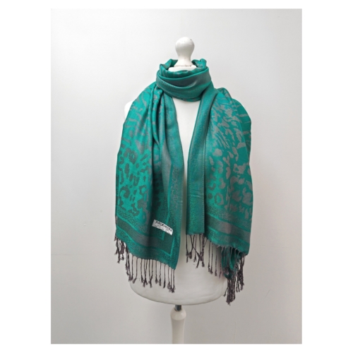Super Soft Pashmina Scarf Shawl Wrap-2503 Animal Print Emerald
