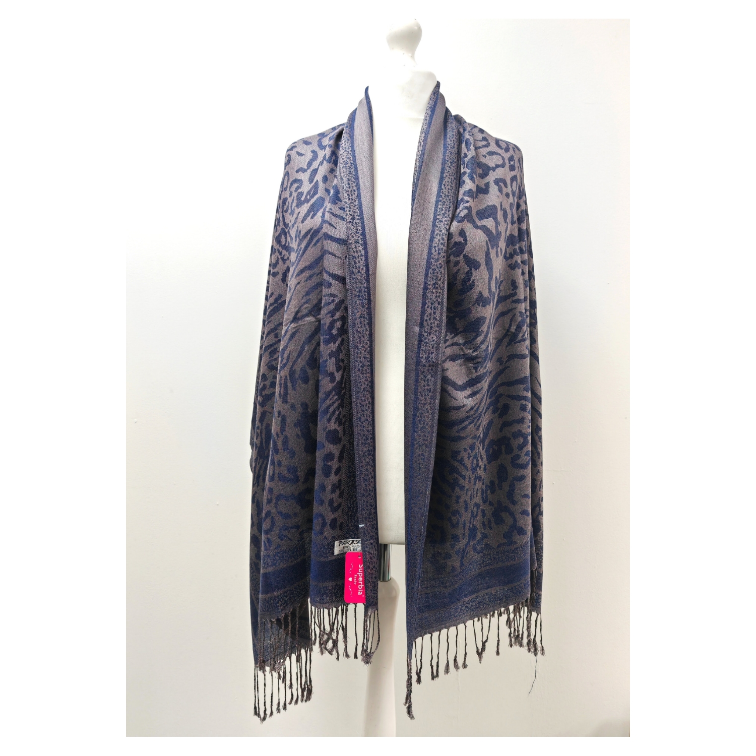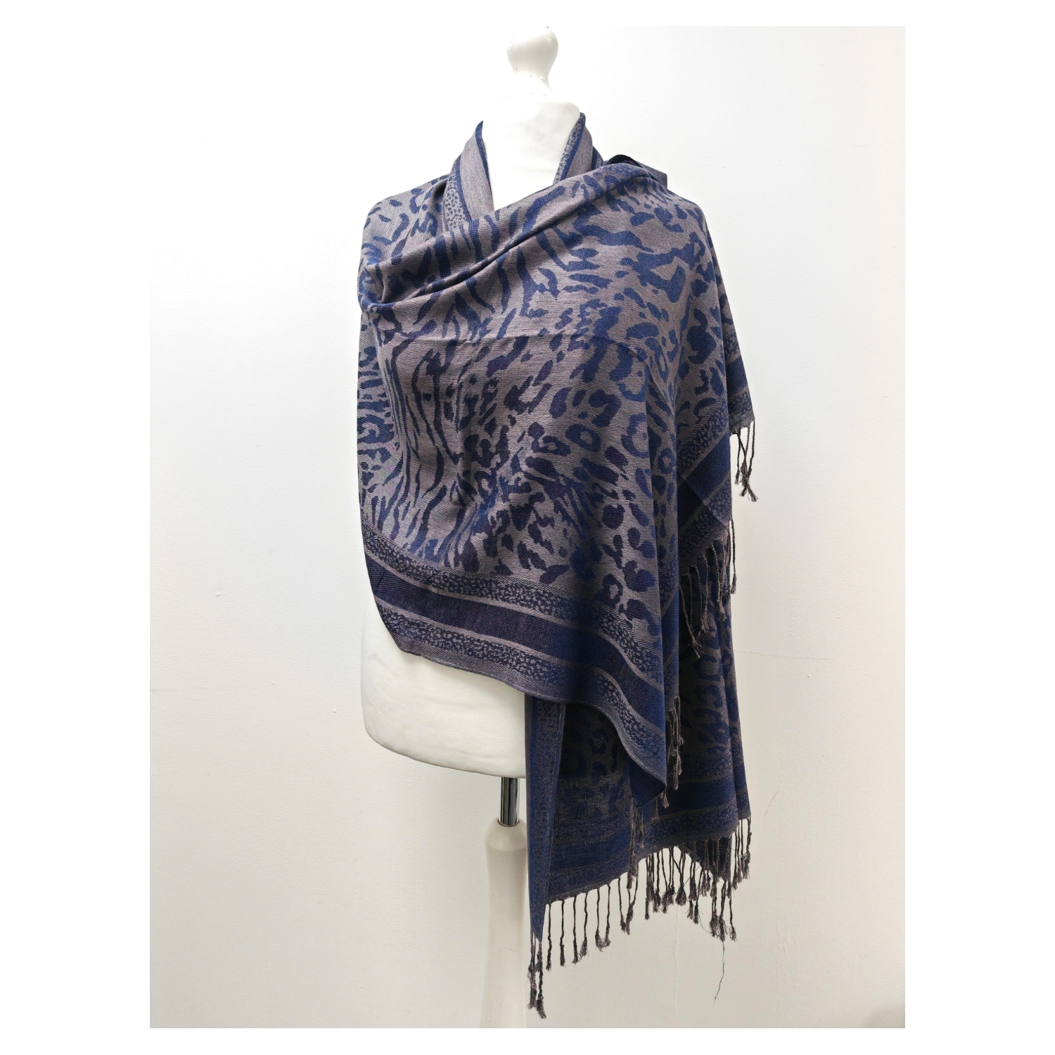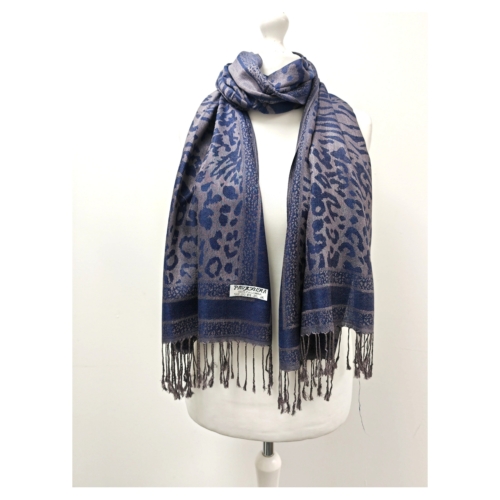 Super Soft Pashmina Scarf Shawl Wrap-2503 Animal Print Navy