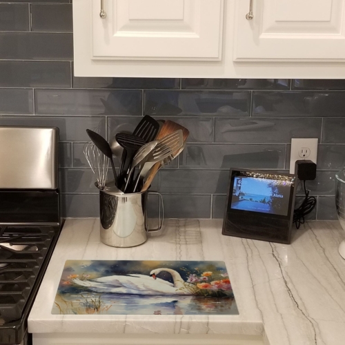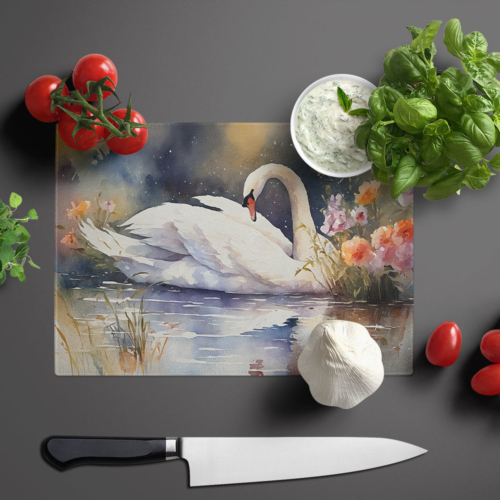 Glass Cutting Board featuring breed specific Swan artwork. Introduce your kitchen to the vibrant, large Decorative Glass Cutting Board from Caroline’s Treasures. Crafted from resilient tempered glass, this board is not only a utilitarian necessity but also a colorful art piece. With its generous dimensions of 15 inches in height and 12 inches in length, it offers ample space for all your cutting needs. Every piece showcases captivating artwork from distinguished artists, bringing an aesthetic edge to your kitchen. Beyond its attractive design, this cutting board ensures your countertop stays pristine and unscathed, owing to its heat-resistant properties. Engineered with user convenience in mind, it features non-skid feet for stability, and rounded corners for additional safety. Its robust construction renders it virtually unbreakable, guaranteeing longevity. The board comes with protective feet bumpers, maintaining its position during use. This product is recommended to be hand washed only. Proudly printed and assembled in the United States, this cutting board exemplifies superior craftsmanship. With Caroline’s Treasures’ Decorative Glass Cutting Board, you’re investing in a blend of functionality and artistic flair.