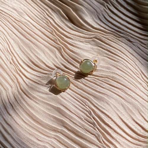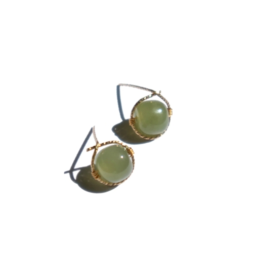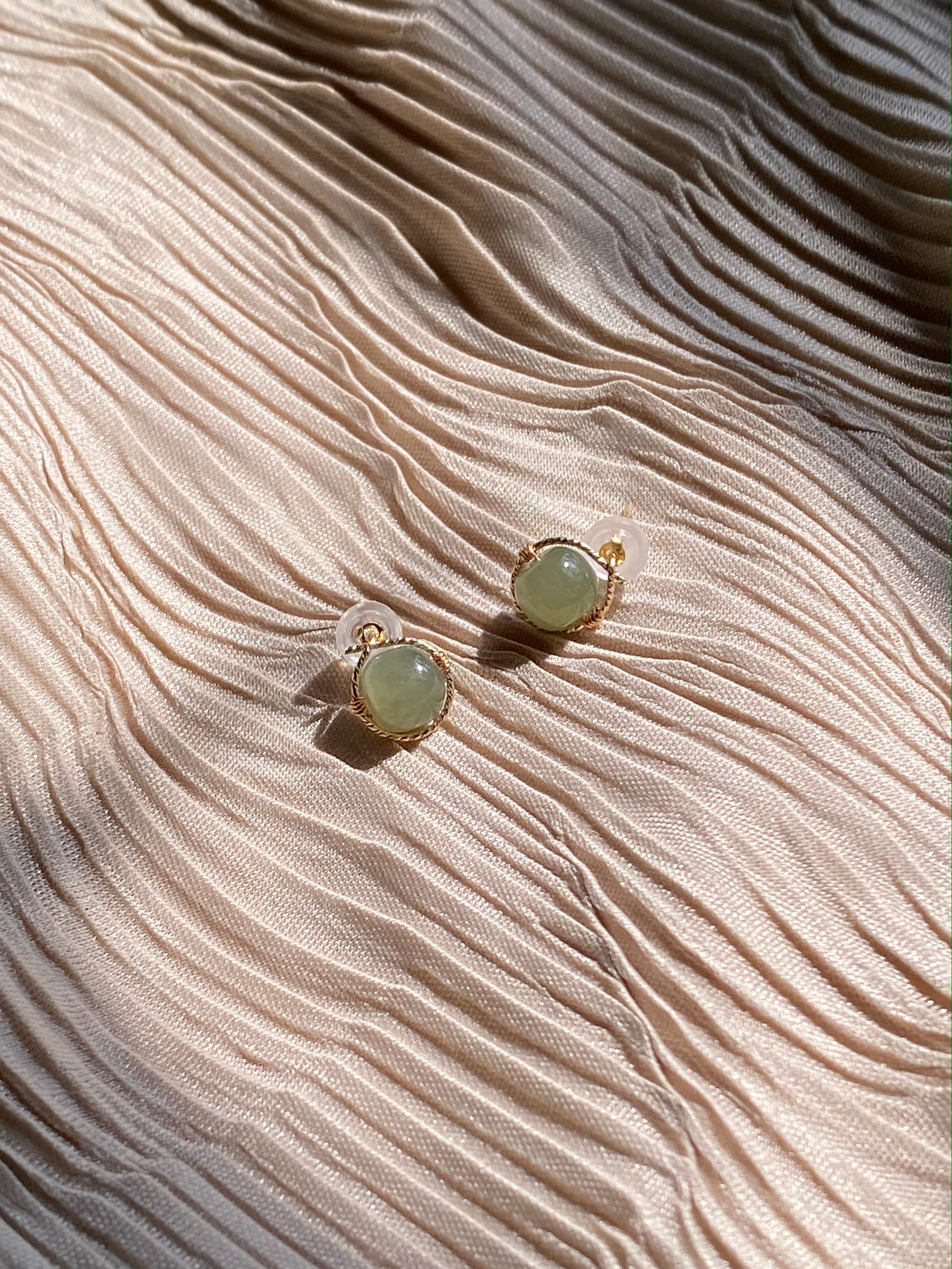 Make a stylish statement with the Sydney earrings. Crafted with naturally beautiful green jade beads, each earring is surrounded by a well-made gold loop. These timeless studs add a subtle pop of color to any look. Natural and untreated nephrite. Made by handwork of carving and polishing. Because of the gemstone’s natural characteristics, each piece may vary slightly in colors and textures.