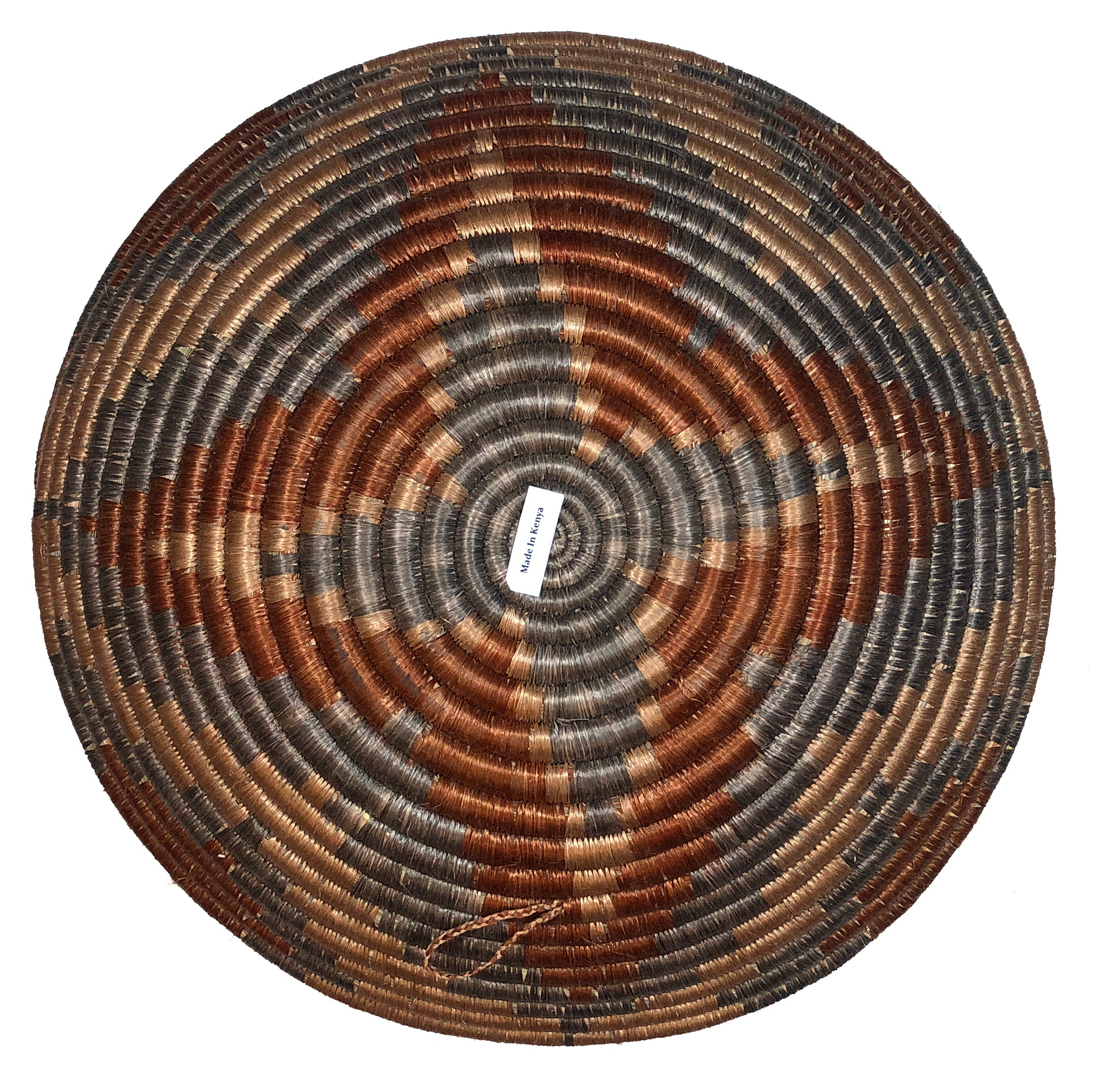 Handwoven by women in Rwanda, each basket is a piece of art containing a very intricate weaving from Sisal and local Sweet Grass. Each basket takes several days to complete.Though this basket can be used for many uses, the basket contains a sewn loop on the back which allows the basket to be hung on a wall for an ascetic purpose. The small size of the loop makes the basket sit tightly against the wall, while the loop is virtually unseen once mounted. It can be more ascetically pleasing to group multiple baskets together due to their varying design and color contrasts.Since this basket is made of natural fibers and grass, we do not recommend submerging in water, or washing with water. If the basket becomes dirty, consider wiping it, or tending to dry cleaning methods.Please message us for bulk orders so we can reduce your shipping costs.Thank you!This basket measures around 12″