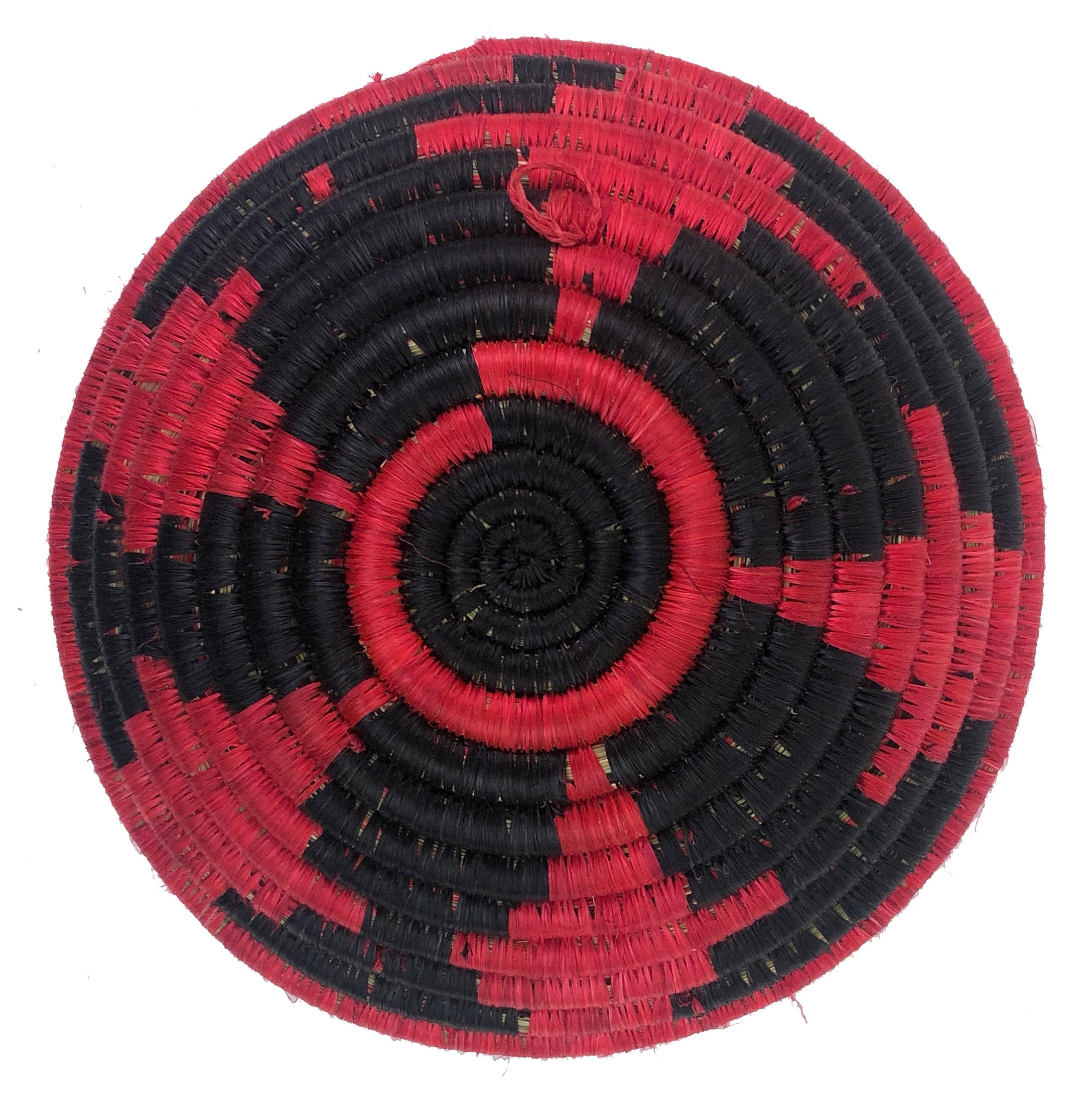 Handwoven by women in Rwanda, each basket is a piece of art containing a very intricate weaving from Sisal and local Sweet Grass. Each basket takes several days to complete.Though this basket can be used for many uses, the basket contains a sewn loop on the back which allows the basket to be hung on a wall for an ascetic purpose. The small size of the loop makes the basket sit tightly against the wall, while the loop is virtually unseen once mounted. It can be more ascetically pleasing to group multiple baskets together due to their varying design and color contrasts.Since this basket is made of natural fibers and grass, we do not recommend submerging in water, or washing with water. If the basket becomes dirty, consider wiping it, or tending to dry cleaning methods.Please message us for bulk orders so we can reduce your shipping costs.Thank you!This basket measures 8″ x 2″