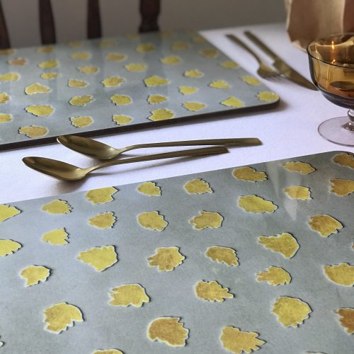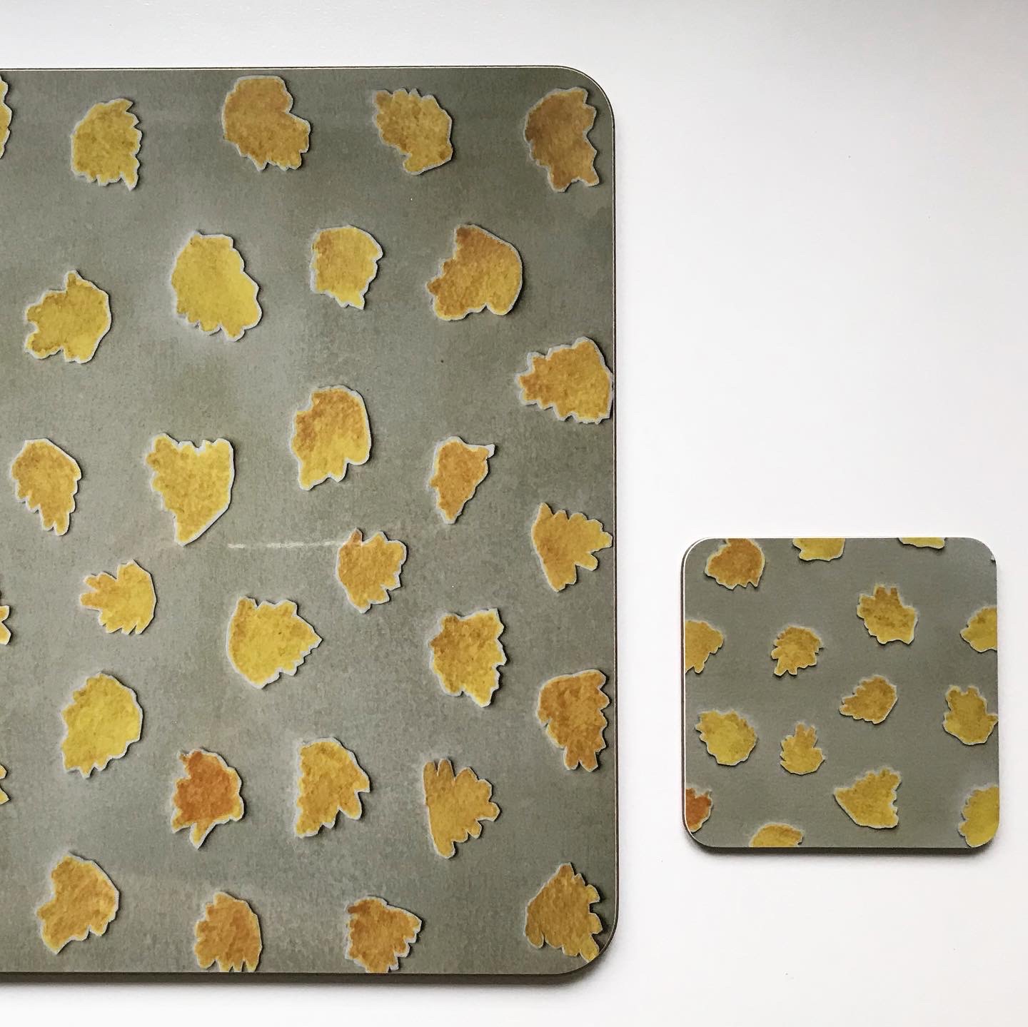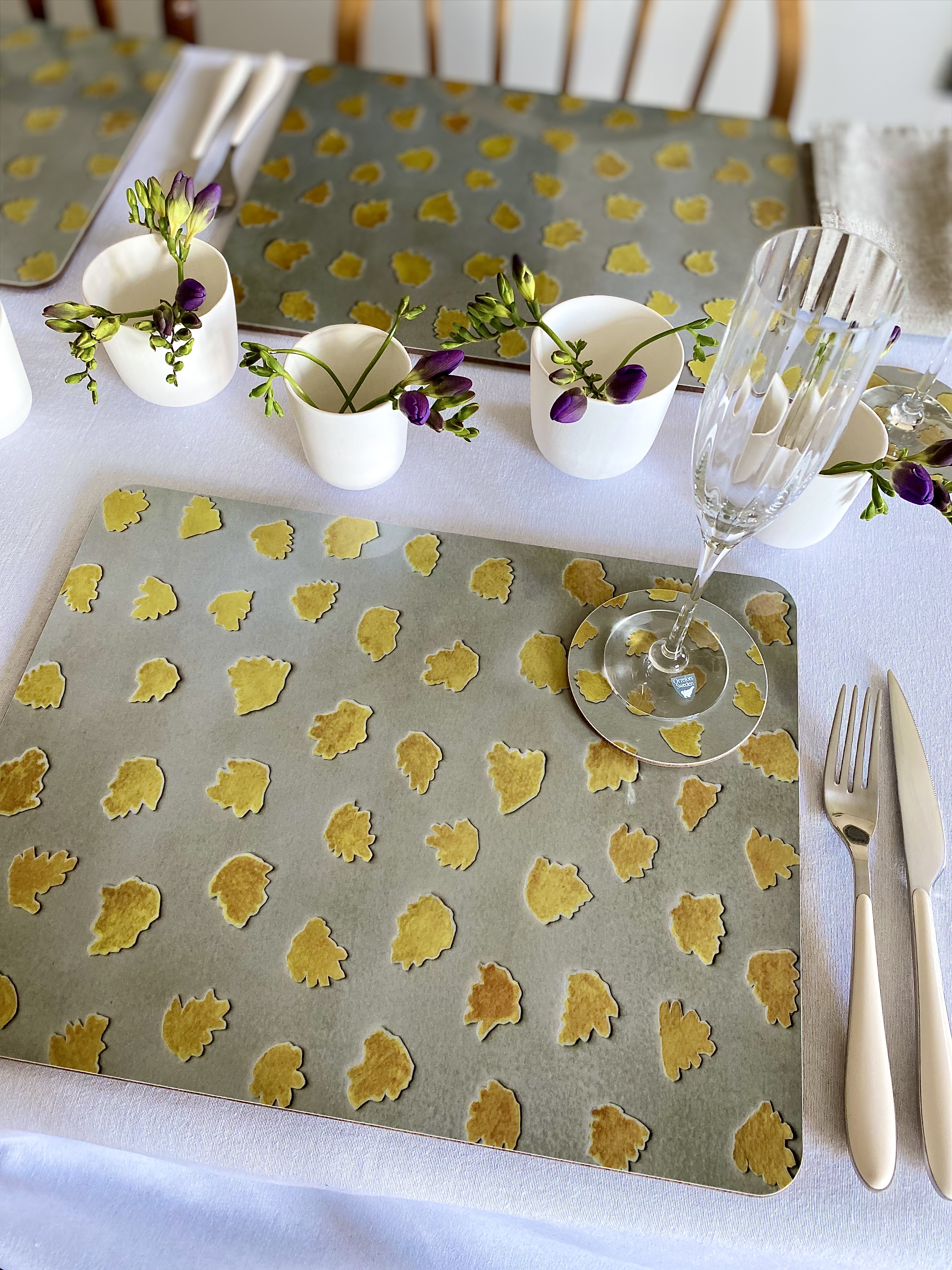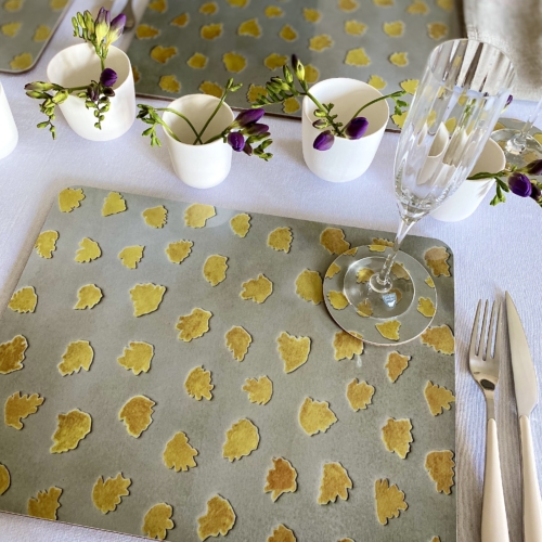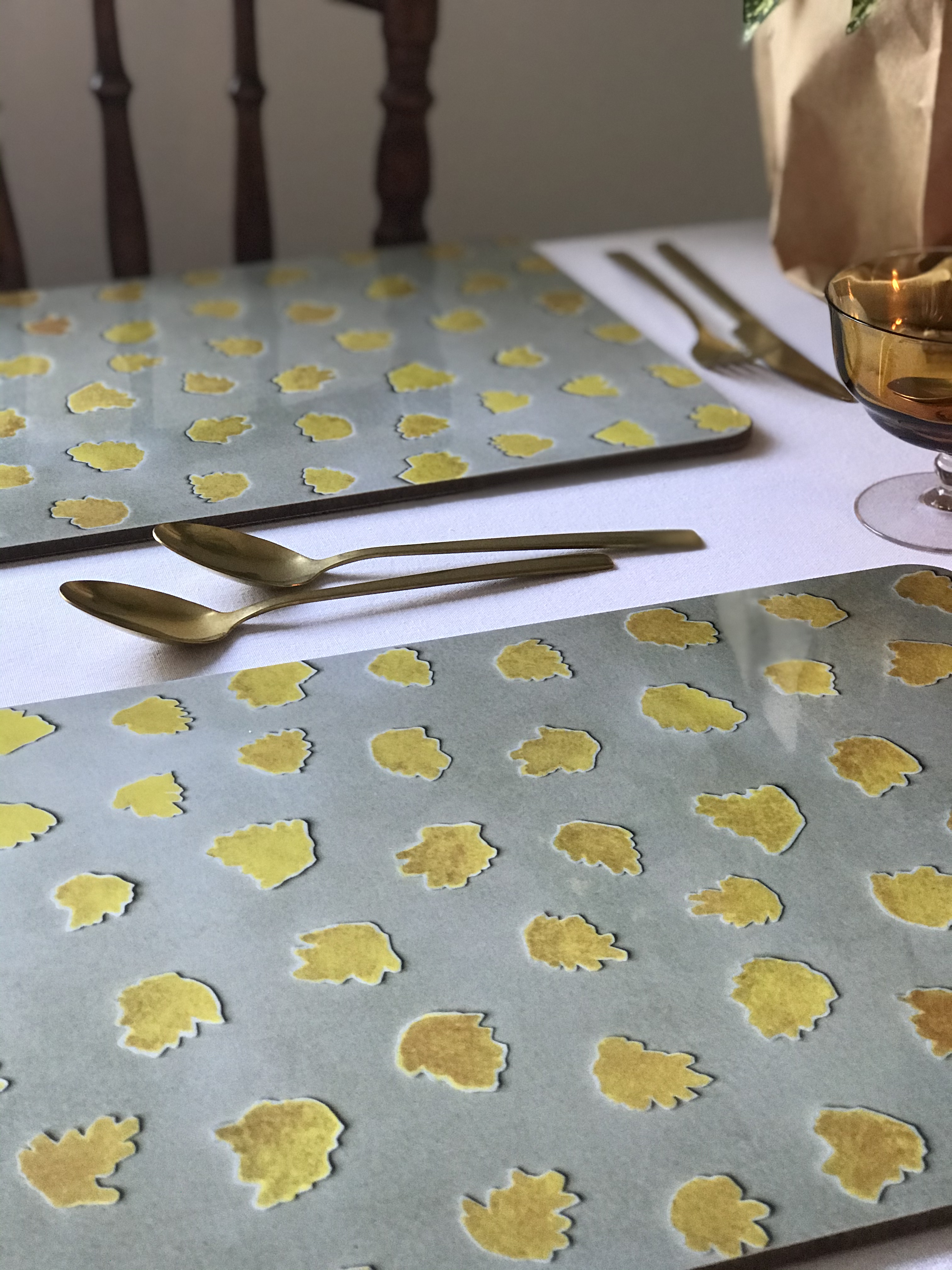 Beautiful and unique placemat in yellow ochre and beige tones with a superior gloss finish. Meticulously hand-illustrated, my designs are inspired by my treasured Scandinavian upbringing. Each design is named after a person or a place close to my heart in Sweden.