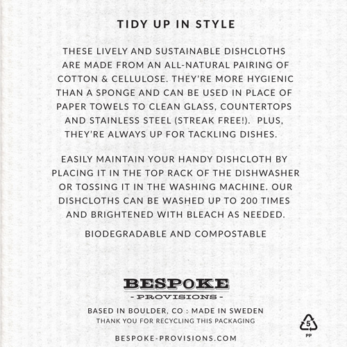 They can be used in place of paper towels to clean glass, countertops and stainless steel- plus, they’re always up for tackling dishes. Easily washable in the top rack of the dishwasher or washing machine.