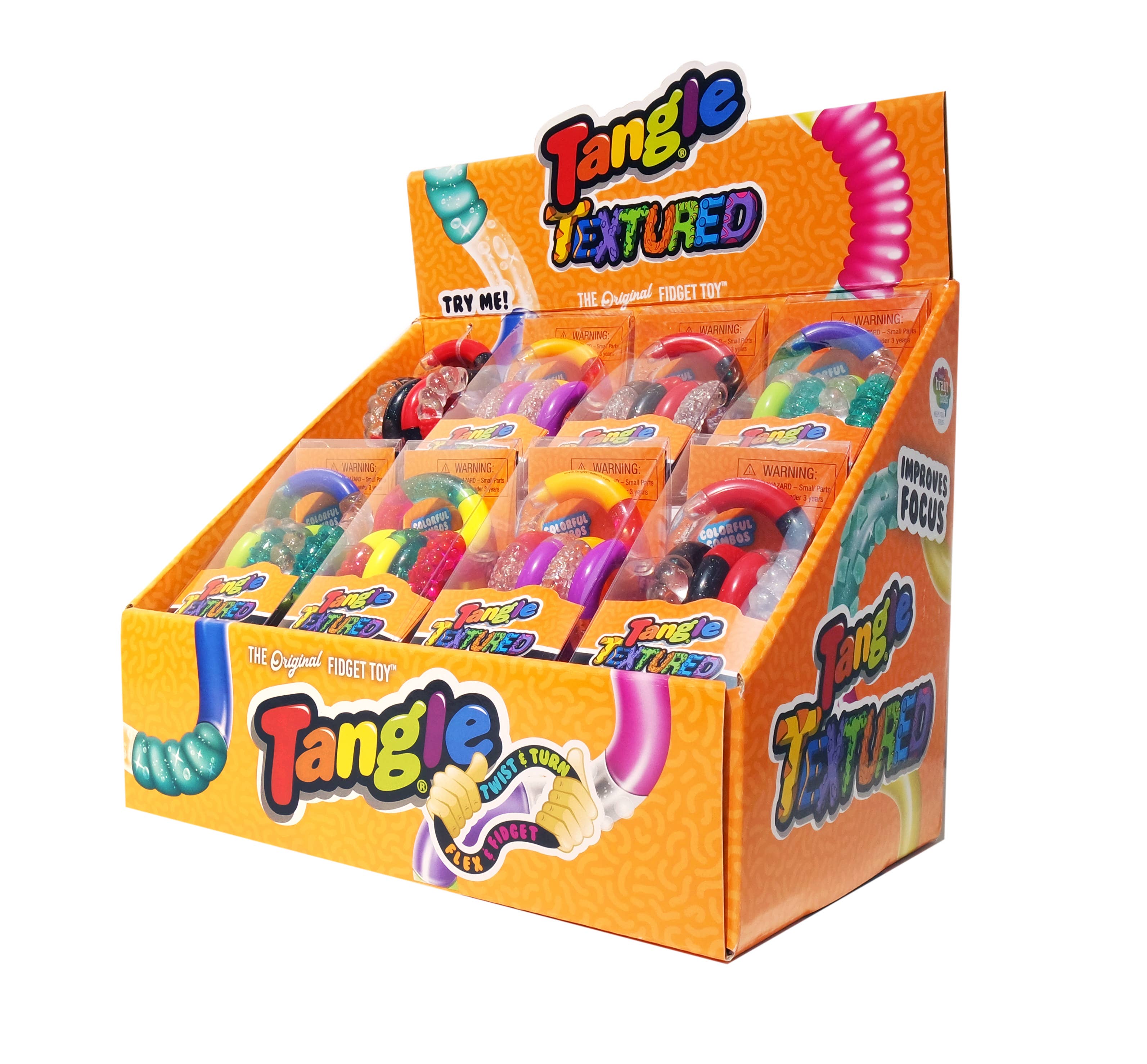 The Textured Tangle Jr. is bumpy and groovy! With colorful textured sections, this Tangle offers a ton of tactile stimulation making it so much fun to touch and explore with your fingers. You won’t be able to put it down! Collect and connect them all to create a Tangle as unique as you are! ► FIDGET TO FOCUS: Tangle fidget toys are specially designed to enhance learning and spark creativity! Studies show that movement is critical for cognitive growth. Fidgeting with Tangles allows you to utilize both sides of the brain – activating both hemispheres synchronously to enhance focus and improve retention of information. ► THE UNIVERSAL PLAYTHING: Tangle fidget toys are the perfect way to express your creativity. Collect and connect them to create a Tangle that’s uniquely you! There are countless benefits to fidgeting with Tangles including increased flexibility and range of motion for hands and wrists as well as soothing nervous energy and anxiety when used regularly.