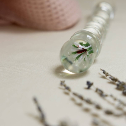 Immerse yourself in THE sensory experience with the Tansy Blossom Swirl Glass Dildo. Beautifully crafted from sustainable Borosilicate glass, this 8-inch pleasure device come piece of art is meticulously designed to satisfy your desires.It’s unique 1.25-inch diameter ribbed shaft offers a tantalising texture, providing an incredible sensation with every movement. Amplifying the pleasure, the bulbous ends are artfully shaped for intensified stimulation and comfort.Blossom Swirl’s design isn’t only about functionality. Its beauty lies in the blend of elegance and durability, thanks to the hypoallergenic Borosilicate glass. This also allows for easy cleaning and guarantees long-lasting use.Experience the Tansy Blossom Swirl in tandem with our Simply Lube for a truly sensational journey. With this beautiful piece, intimate pleasure meets sustainability in the most exquisite way.