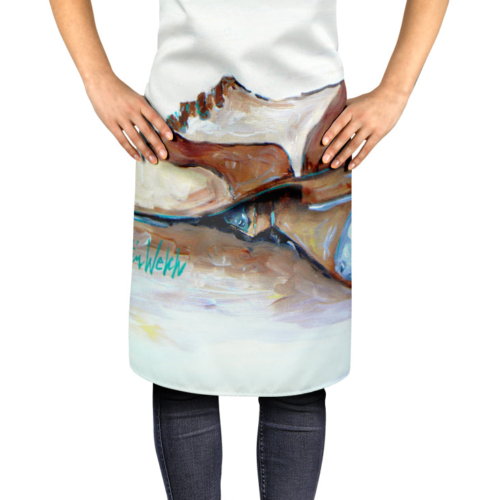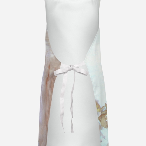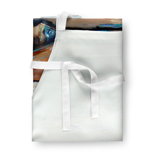 Elevate your cooking, baking, and grilling experiences with our versatile Kitchen or BBQ Apron. This Bib Style apron isn’t just limited to culinary activities – it also serves as an excellent baking apron, artist apron, server apron, gardening apron, or even a dog grooming apron. The apron showcases vibrant full-color artwork contributed by one of our talented artists, bringing a dash of style to your daily tasks. With dimensions of approximately 27″W x 30″H, it provides ample coverage to protect your clothing from spills and splashes. Our apron is meticulously crafted from 100% Ultra Spun Polyester, known for its durability and lightweight nature. The apron comes with white tie straps, ensuring a comfortable and adjustable fit for all. It’s a perfect choice for kitchen apron enthusiasts, whether you are a woman or a man. Designed for easy maintenance, this apron is fully machine washable. The quick-drying polyester material actively reduces staining, keeping your apron looking fresh and new for longer. Our beautifully designed apron isn’t just a functional kitchen accessory – it’s a fashion statement in the culinary world!