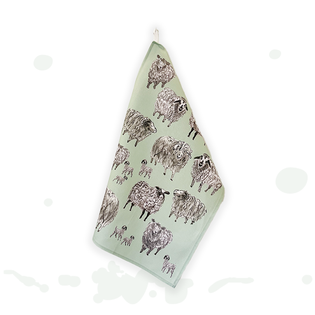 A soft, absorbent cotton tea towel featuring a design created of Sheeps and Rams from our own drawings (zero stock libraries, zero generative AI) — easy to gift and simple to merchandise with matching aprons/cards.