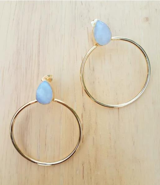 Teardrop Pendant Moonstone Gold Hoop Earrings